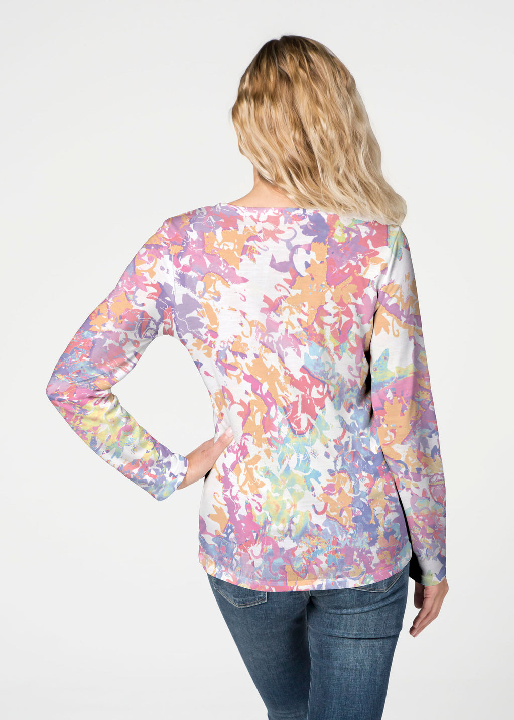 Our French Terry top is comfort and style all in one! Our French Terry top that features long sleeves, a V-neck and a more fitted silhouette that looks stylish in any print.
