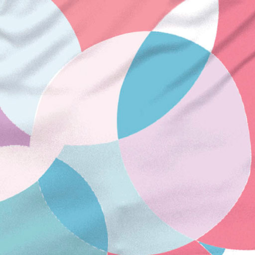 Funky and Fun describe this 60's inspired design incorporating circular shapes with chevron; done in pastels pinks, corals and aquas. Designed by Natalie Neto.
