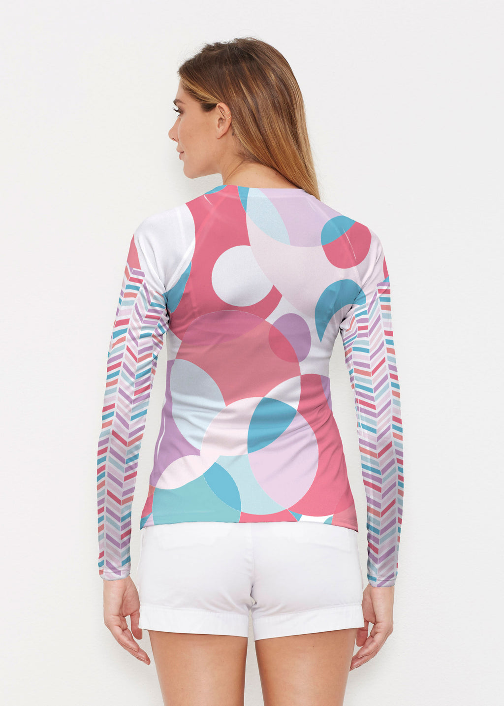 Our WHIMSY ROSE™ Safe Sun UPF 50+ long sleeve, crew neck rash guard offers versatile, beach-to-bistro style, supreme comfort, and an activewear fit. Made in a specially designed Safe Sun textile that blocks more harmful rays and provides a smart solution for those who love to swim, surf, kayak, canoe, waterski, boat, or simply relax waterside.