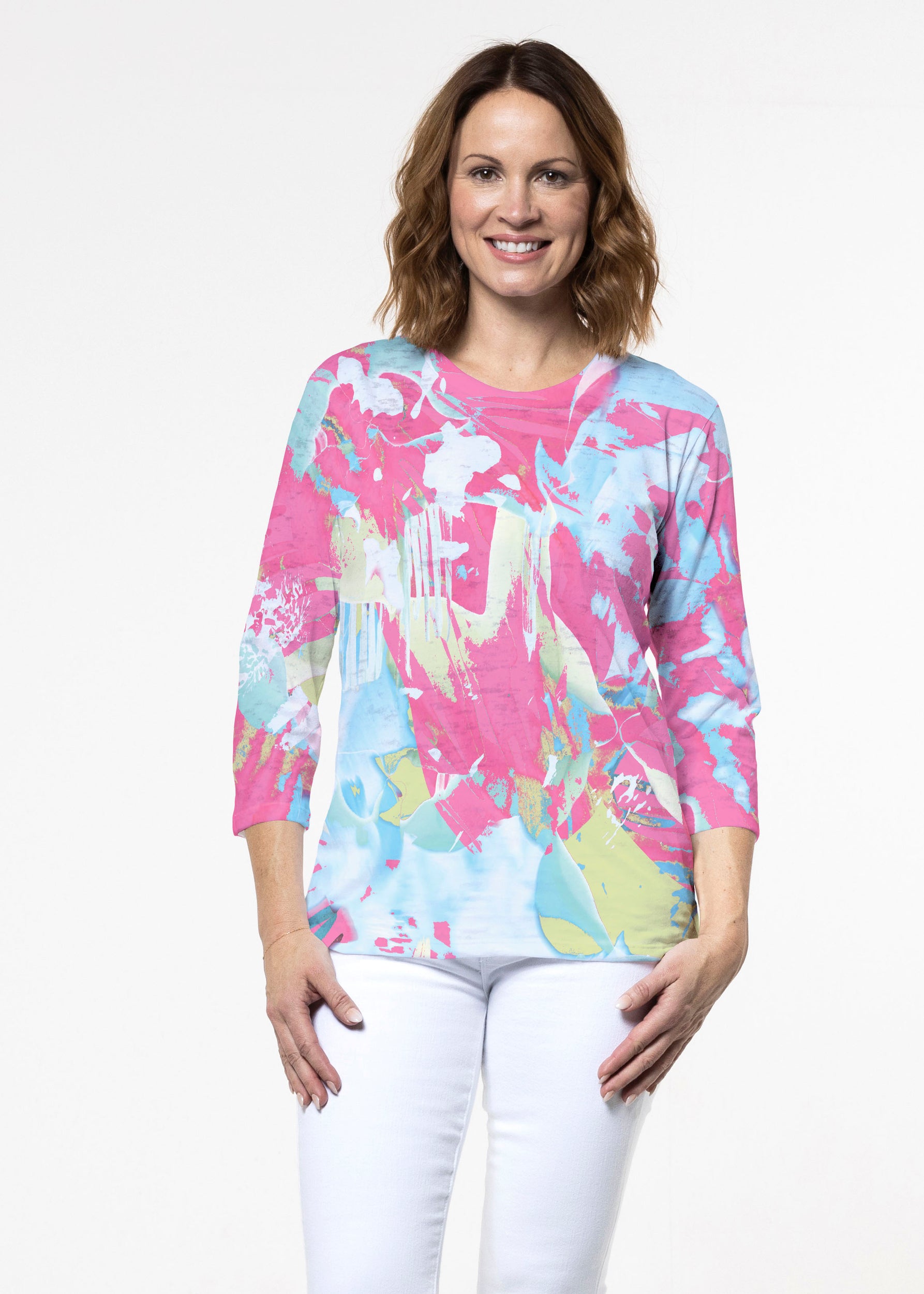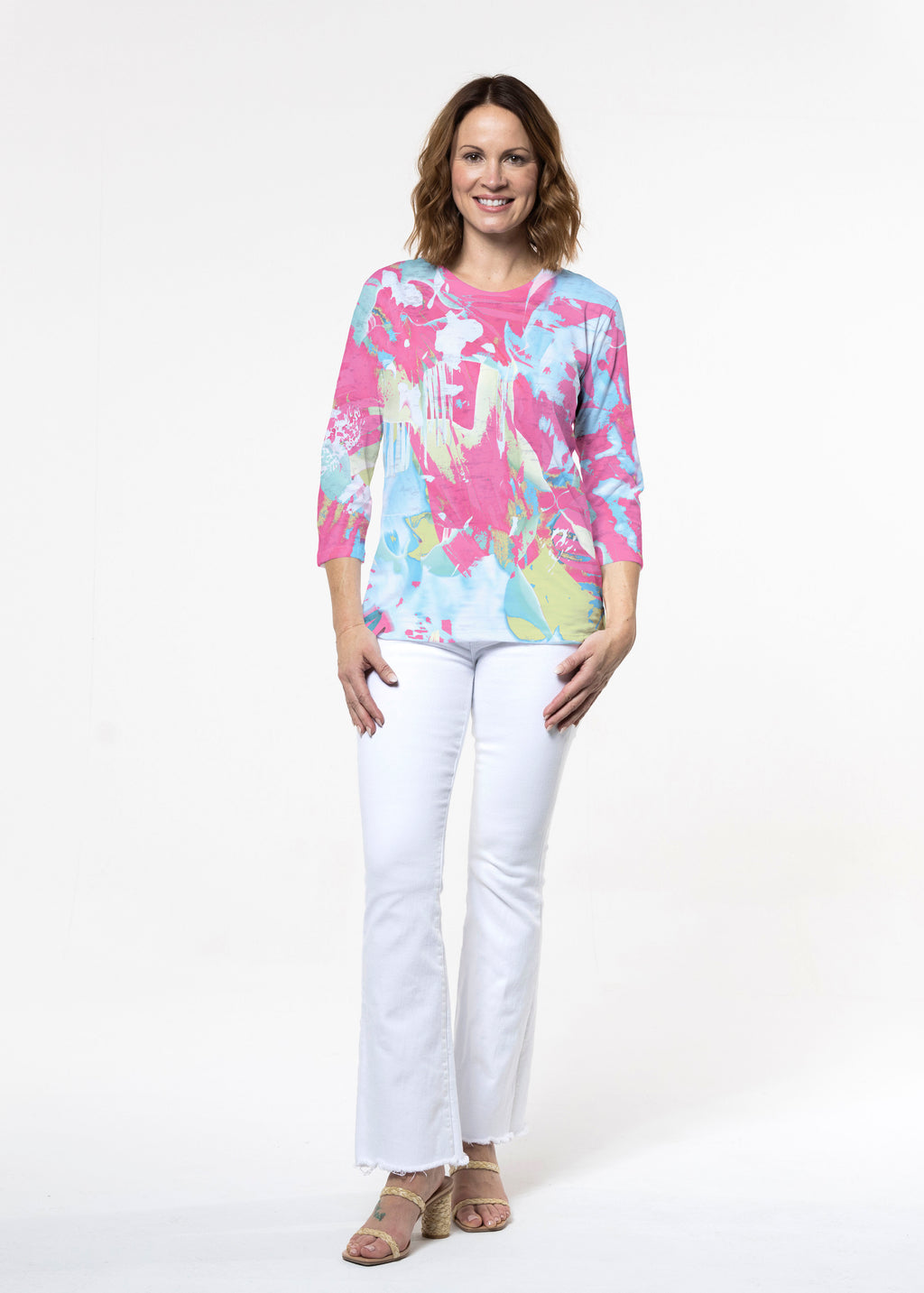 • Miami Splash (26001) ~ Signature 3/4 Sleeve Crew Neck Top