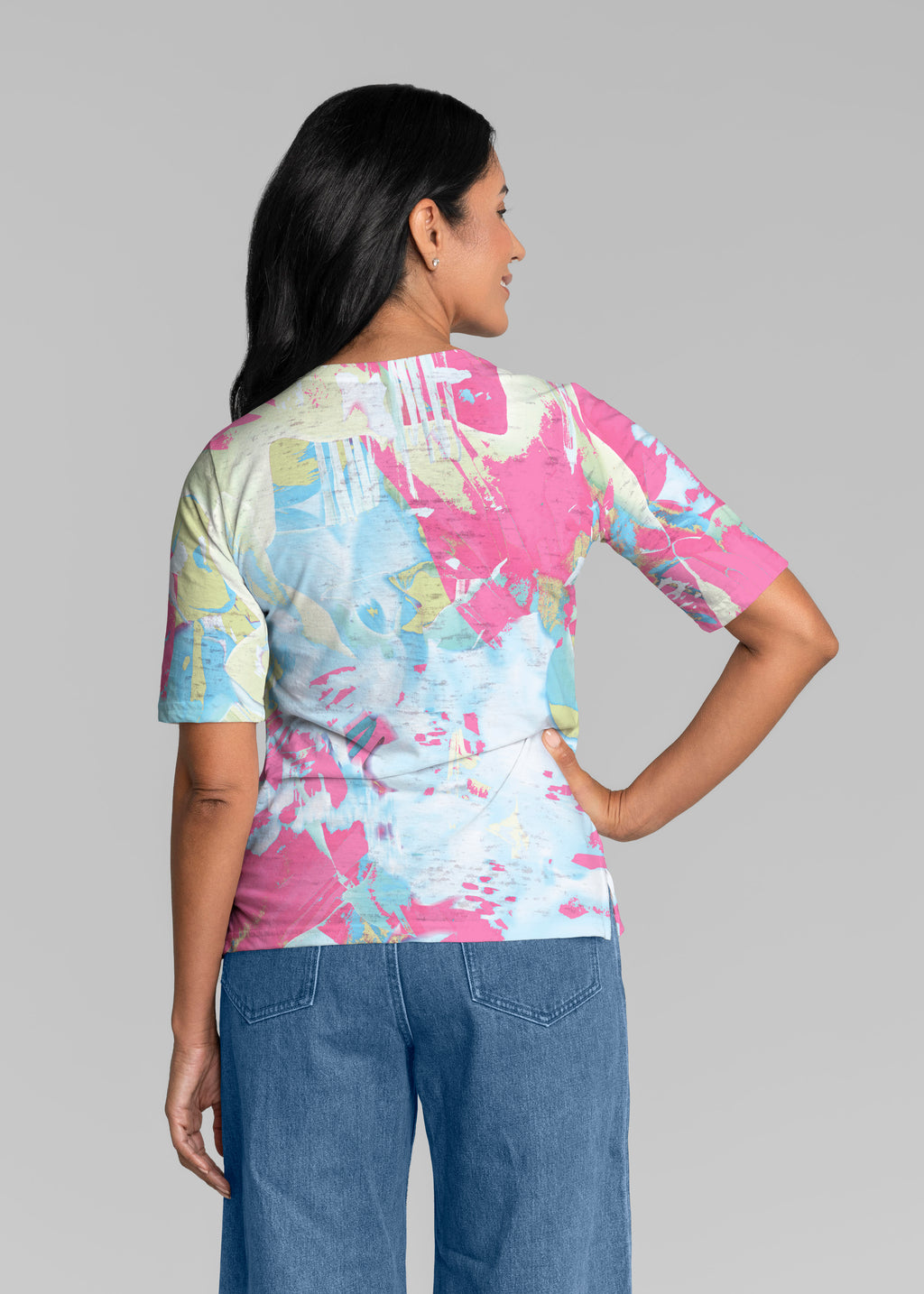 Miami Splash (26001) ~ Signature Elbow Sleeve V-Neck Top