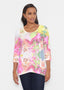 Abstract floral print with shades of fuchsia, light pink, yellow and green designed by Diane Kappa .