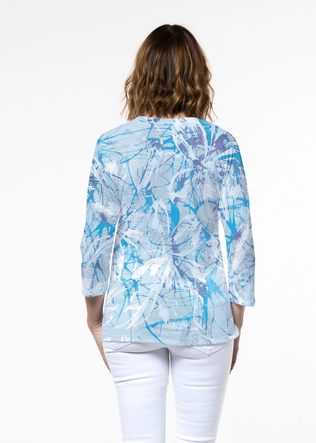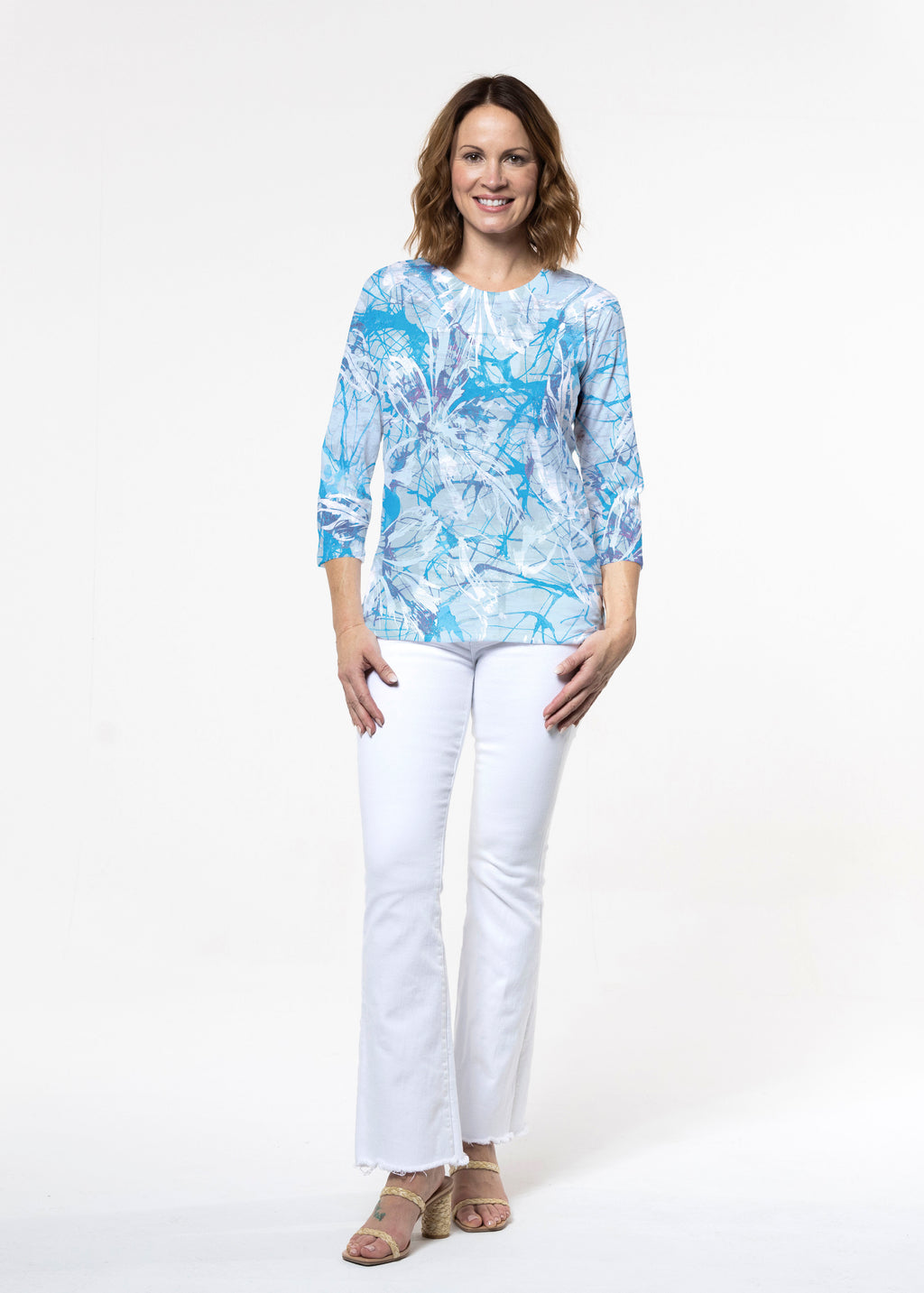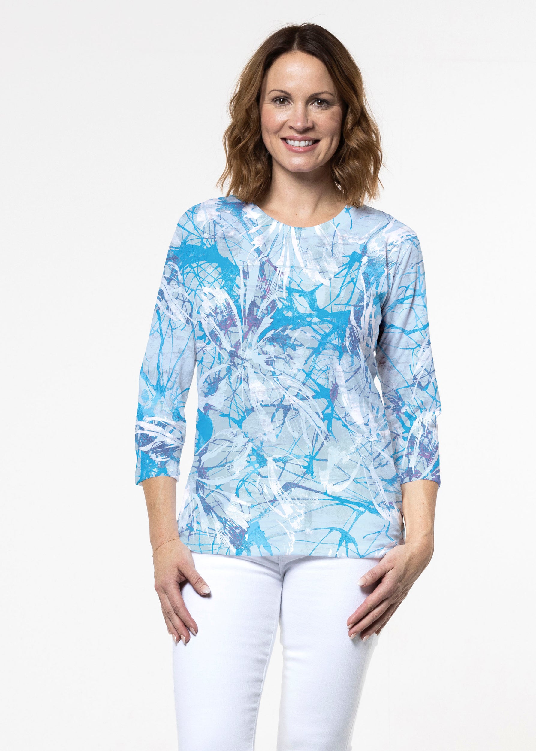 Aspen Aqua (19186) ~ Signature 3/4 Sleeve Crew Neck Top
