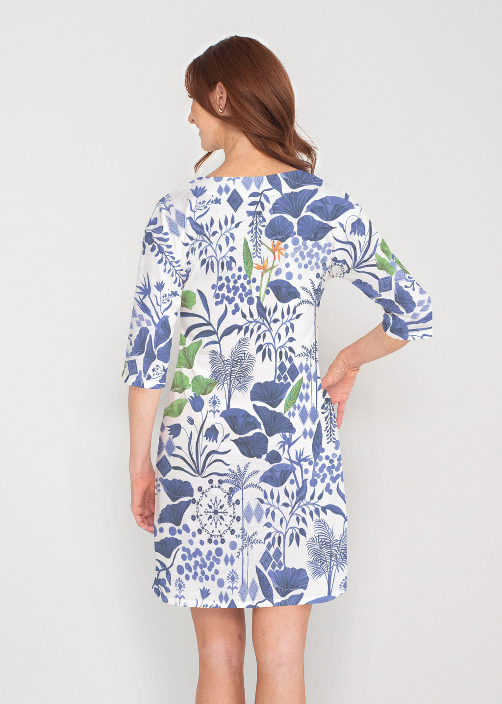Floral Spritz Turquoise (22093) ~ Classic V-neck Swing Dress
