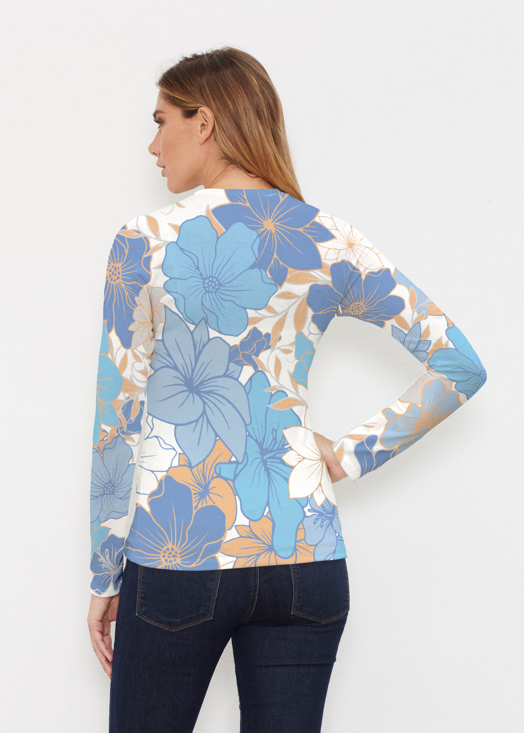 Jungle Warrior Blue (7850) ~ Butterknit Long Sleeve V-Neck Top