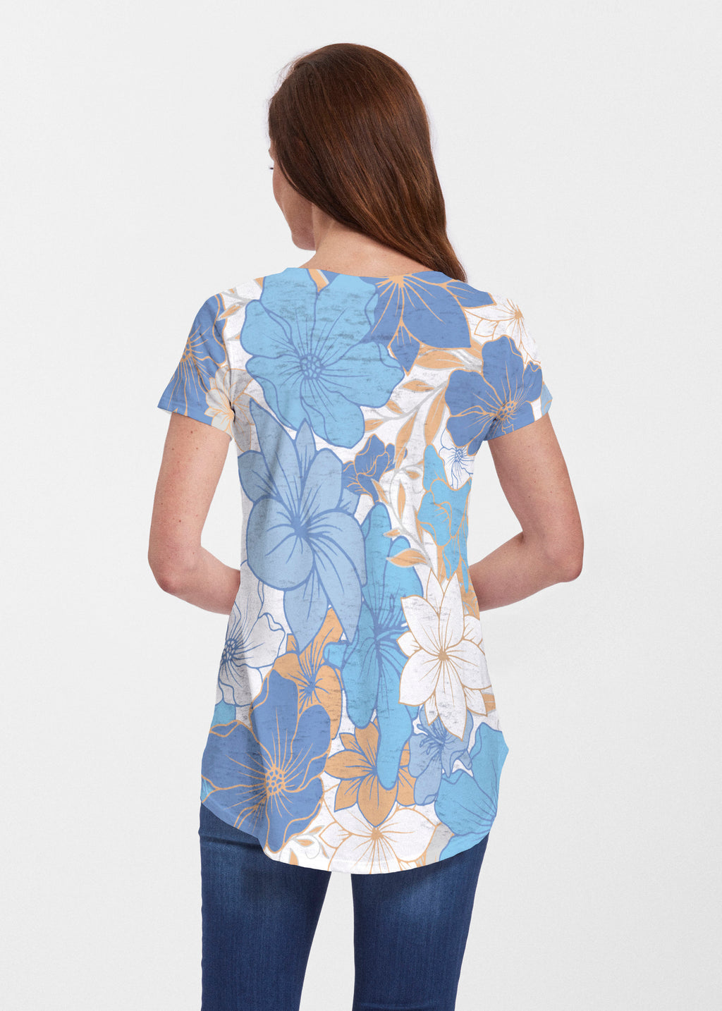 Aqua Citrus (7855) ~ Signature Short Sleeve Scoop Neck Flowy Tunic