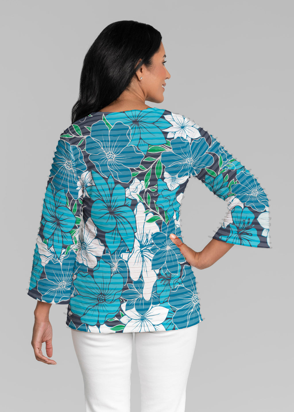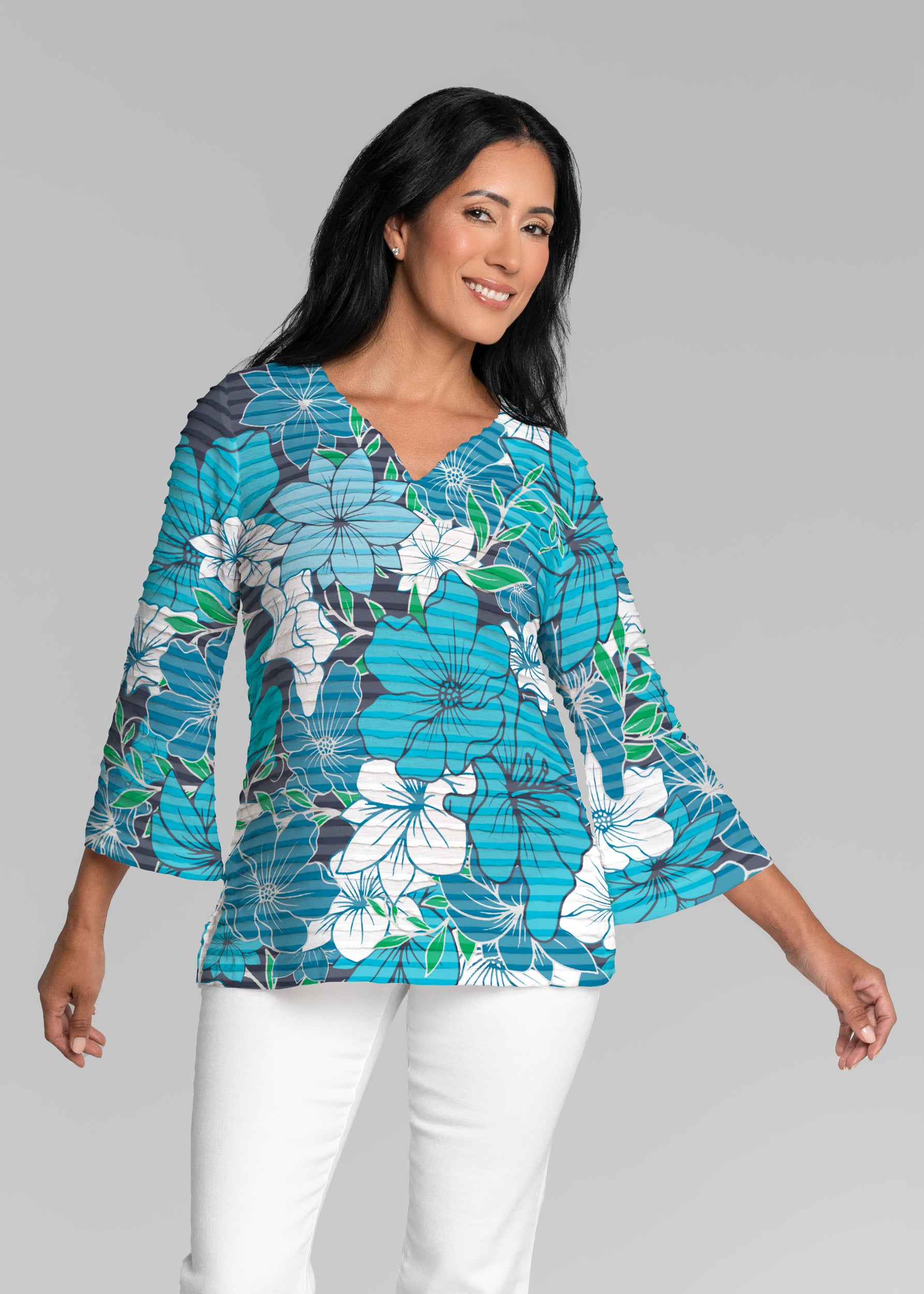 Surfin Safari (26034) ~ Banded 3/4 Bell-Sleeve V-Neck Tunic
