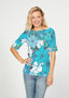 Shadow Aqua (7914) ~ Banded Elbow Sleeve Boat Neck Top