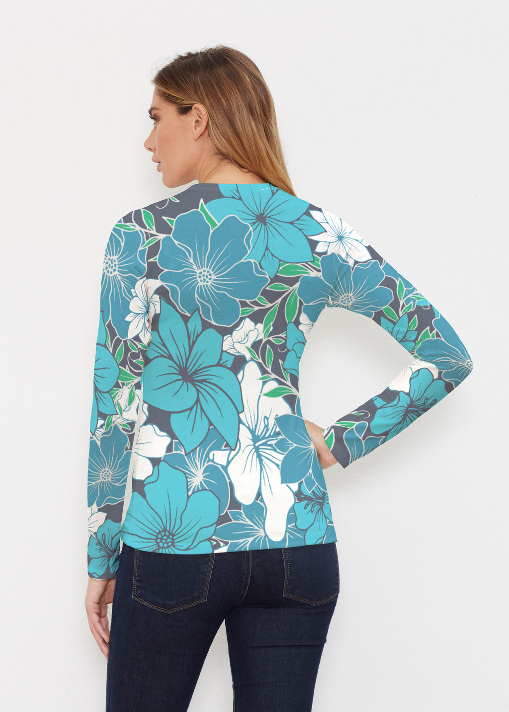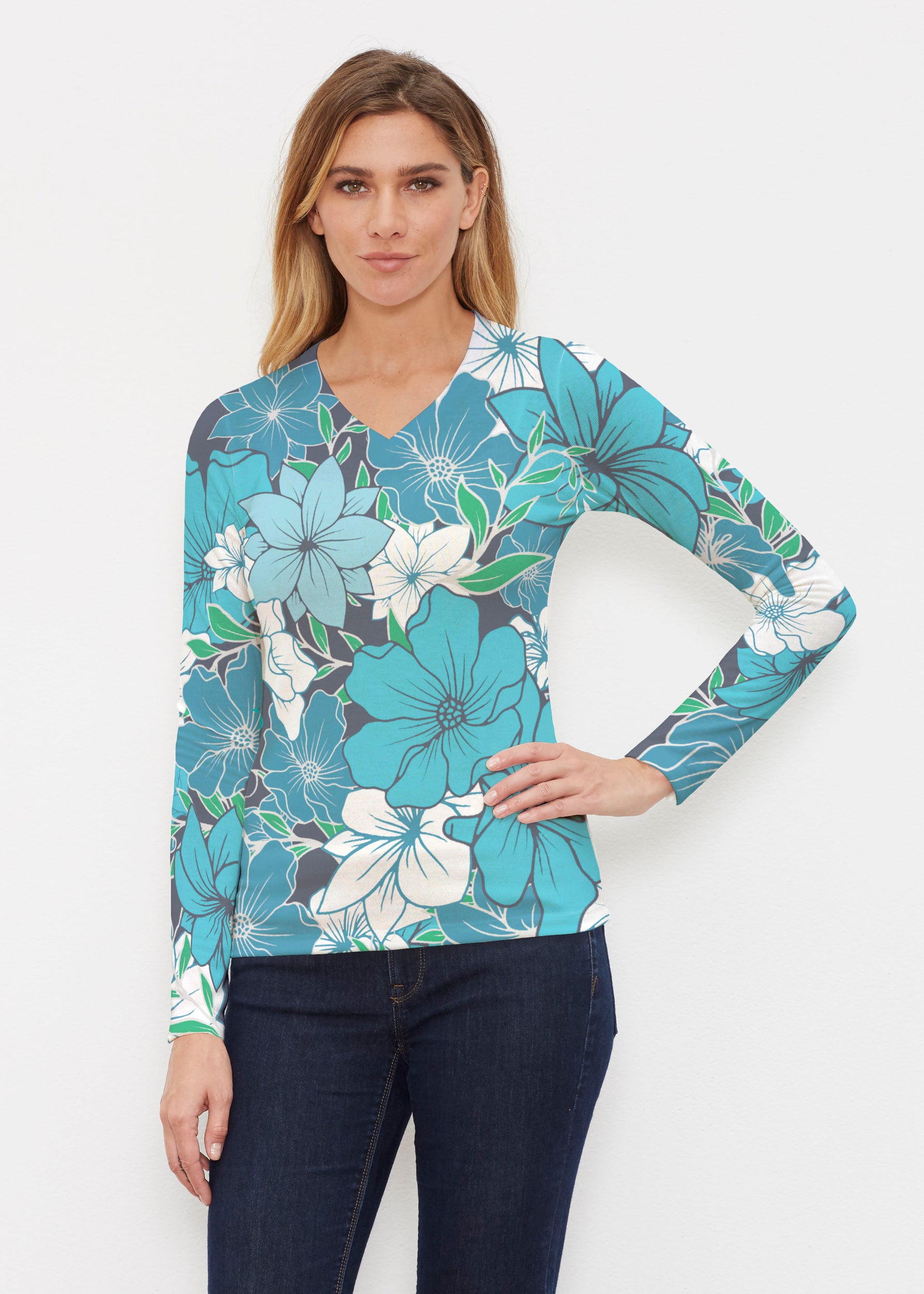 Jungle Warrior Blue (7850) ~ Butterknit Long Sleeve V-Neck Top