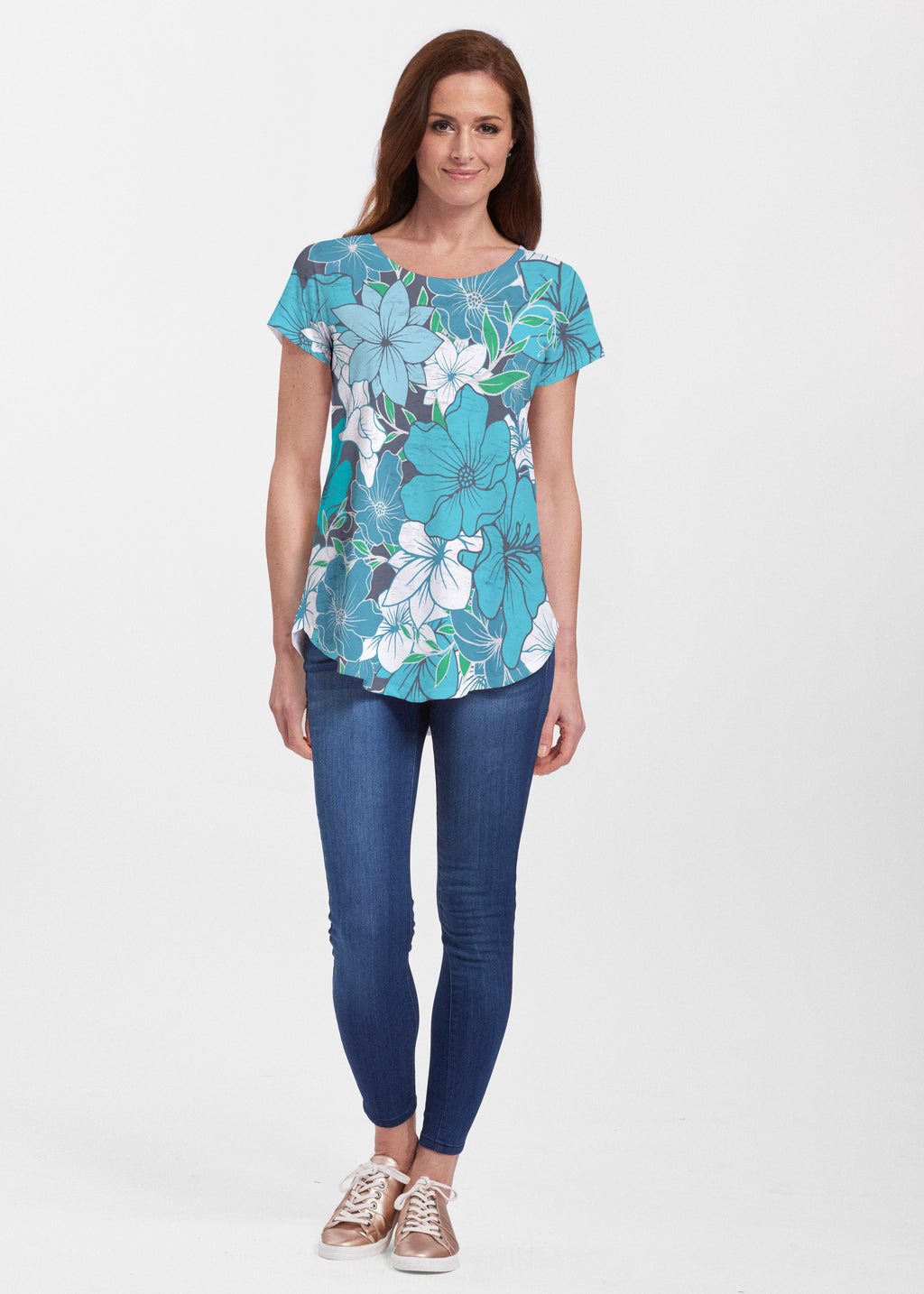 Aqua Citrus (7855) ~ Signature Short Sleeve Scoop Neck Flowy Tunic
