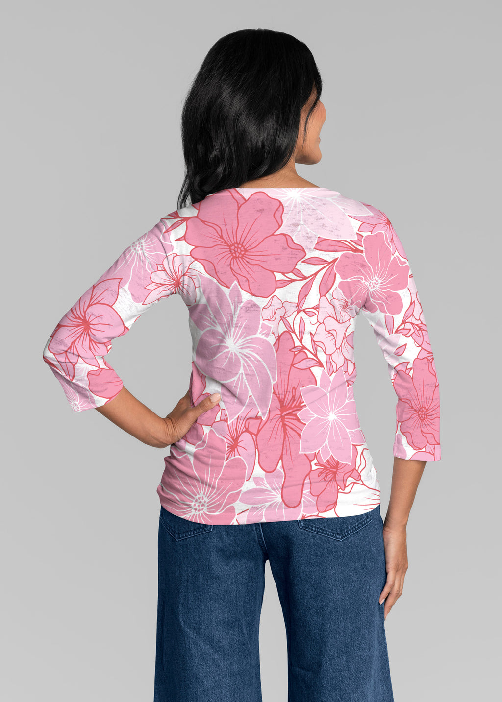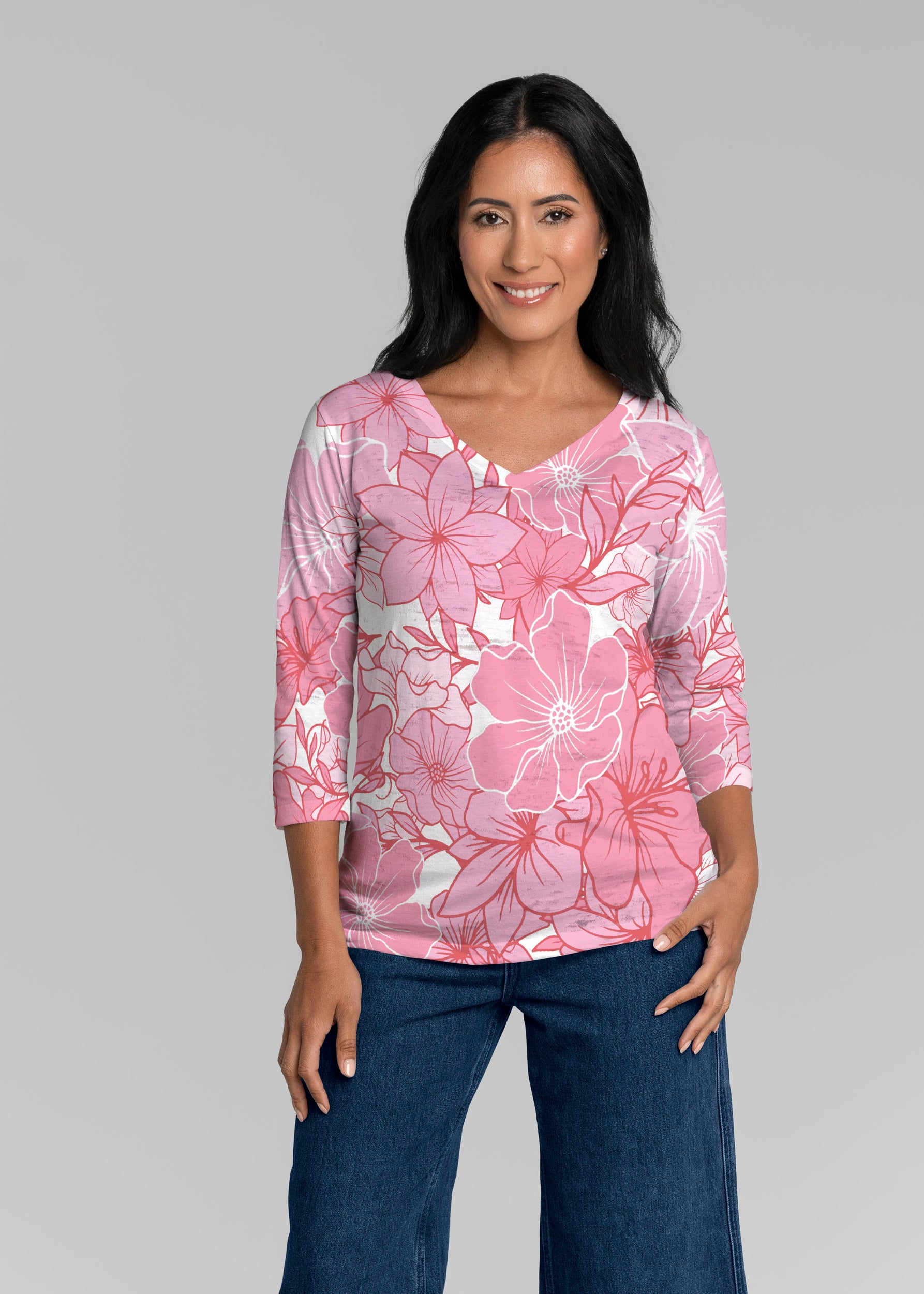 Polly Pink (5268) ~ Signature 3/4 Sleeve V-Neck Top