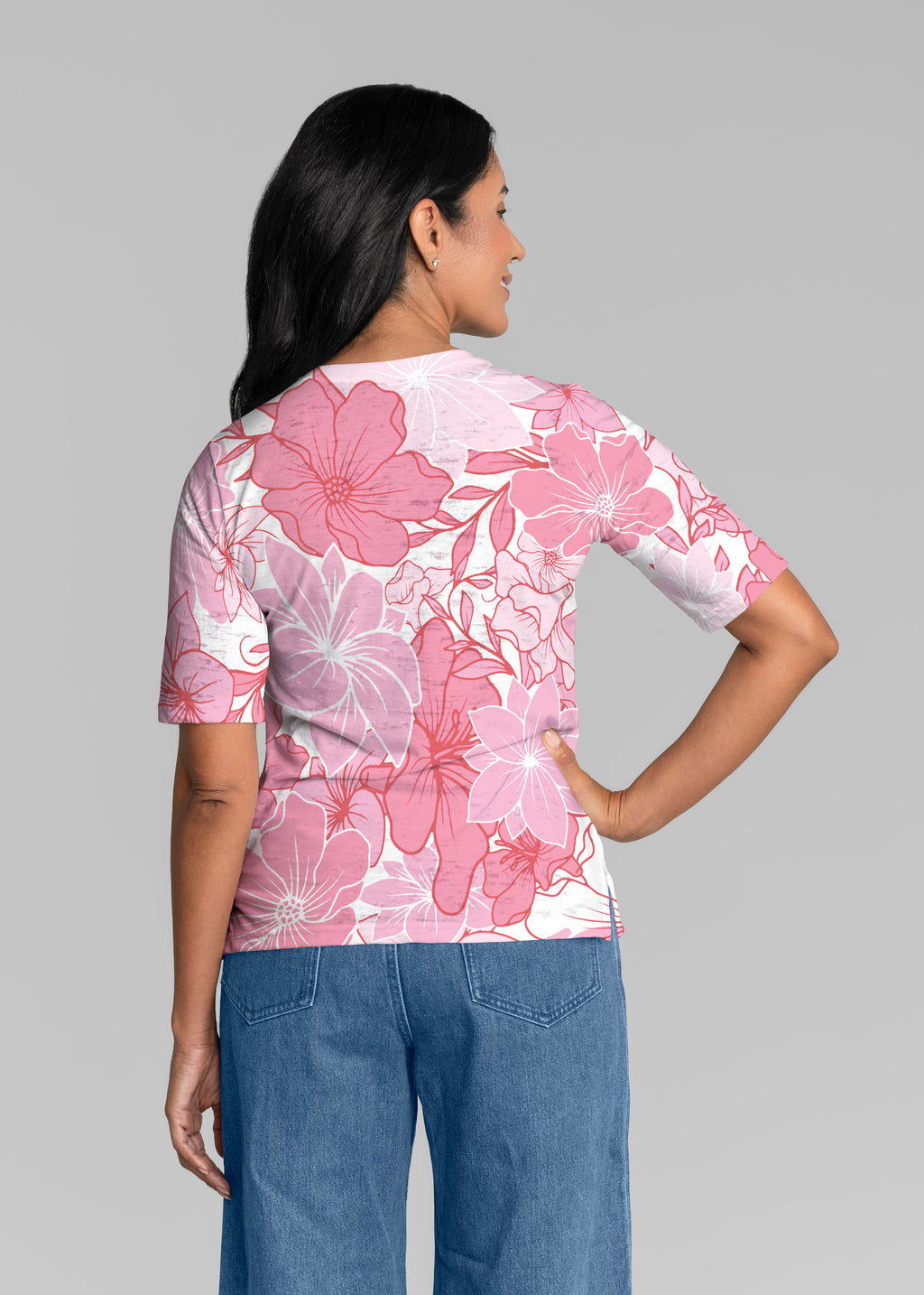 Polly Pink (5268) ~ Signature Elbow Sleeve V-Neck Top