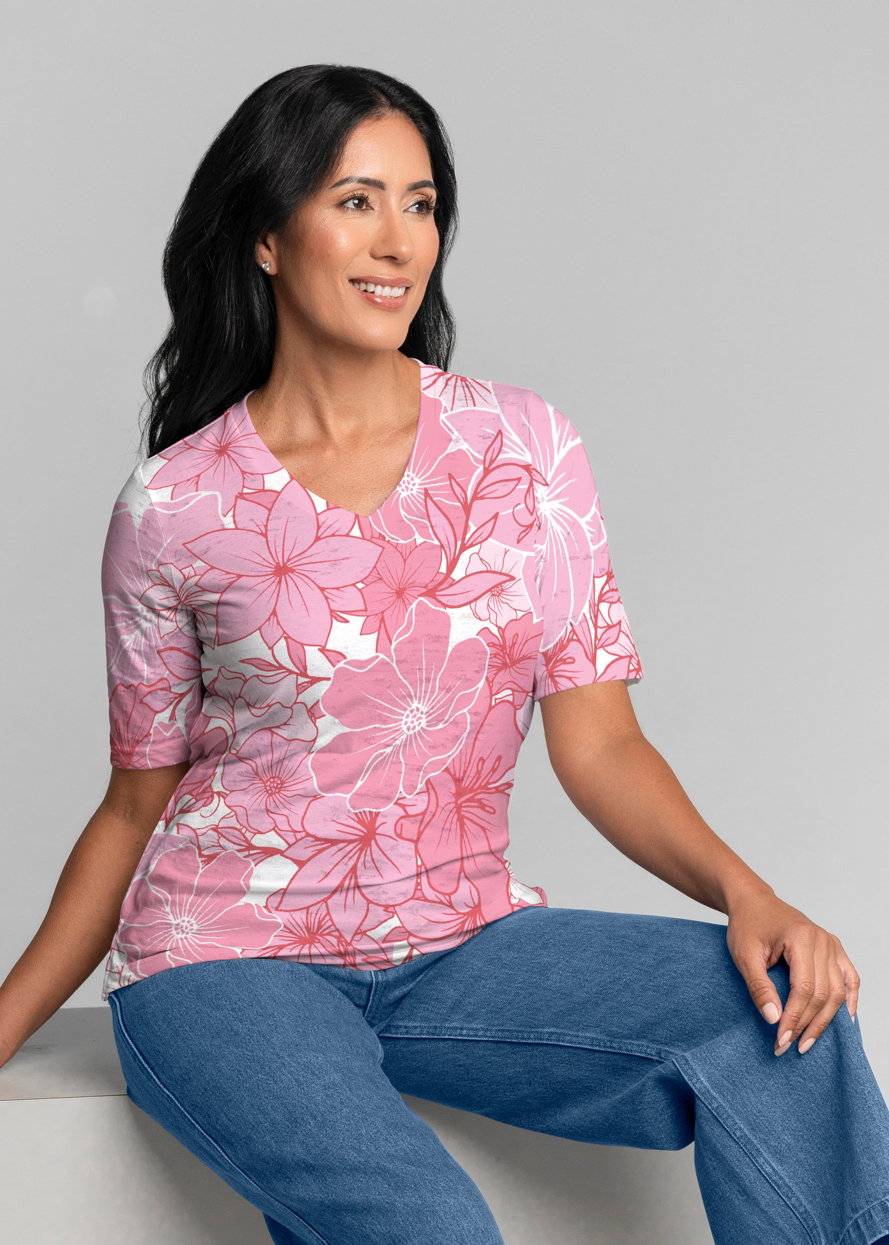 This Signature V-neck top combines the perfect for all day comfort with a relaxed fit and just the right sleeve length for stylish fun. Great on its own or the perfect layering piece.