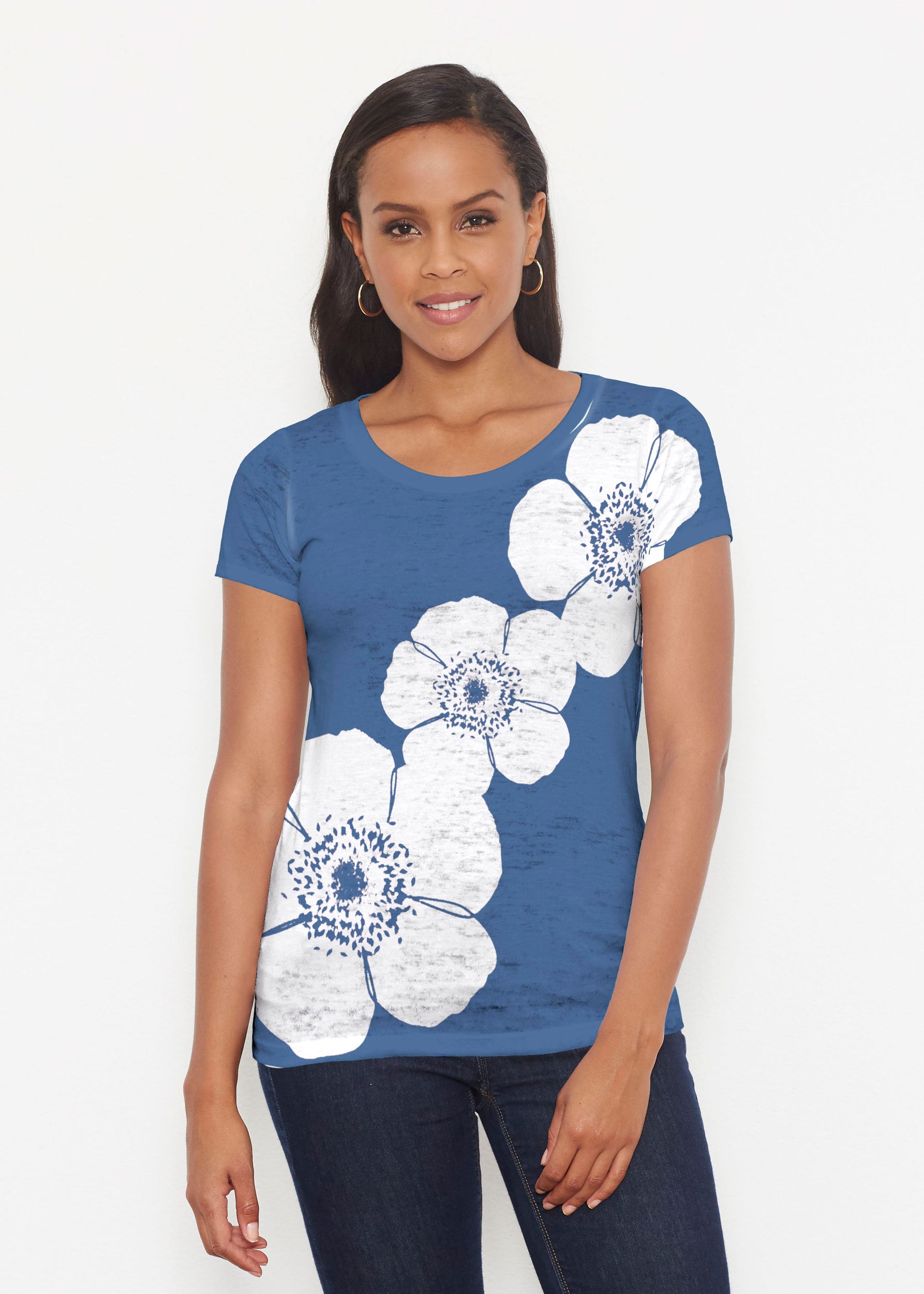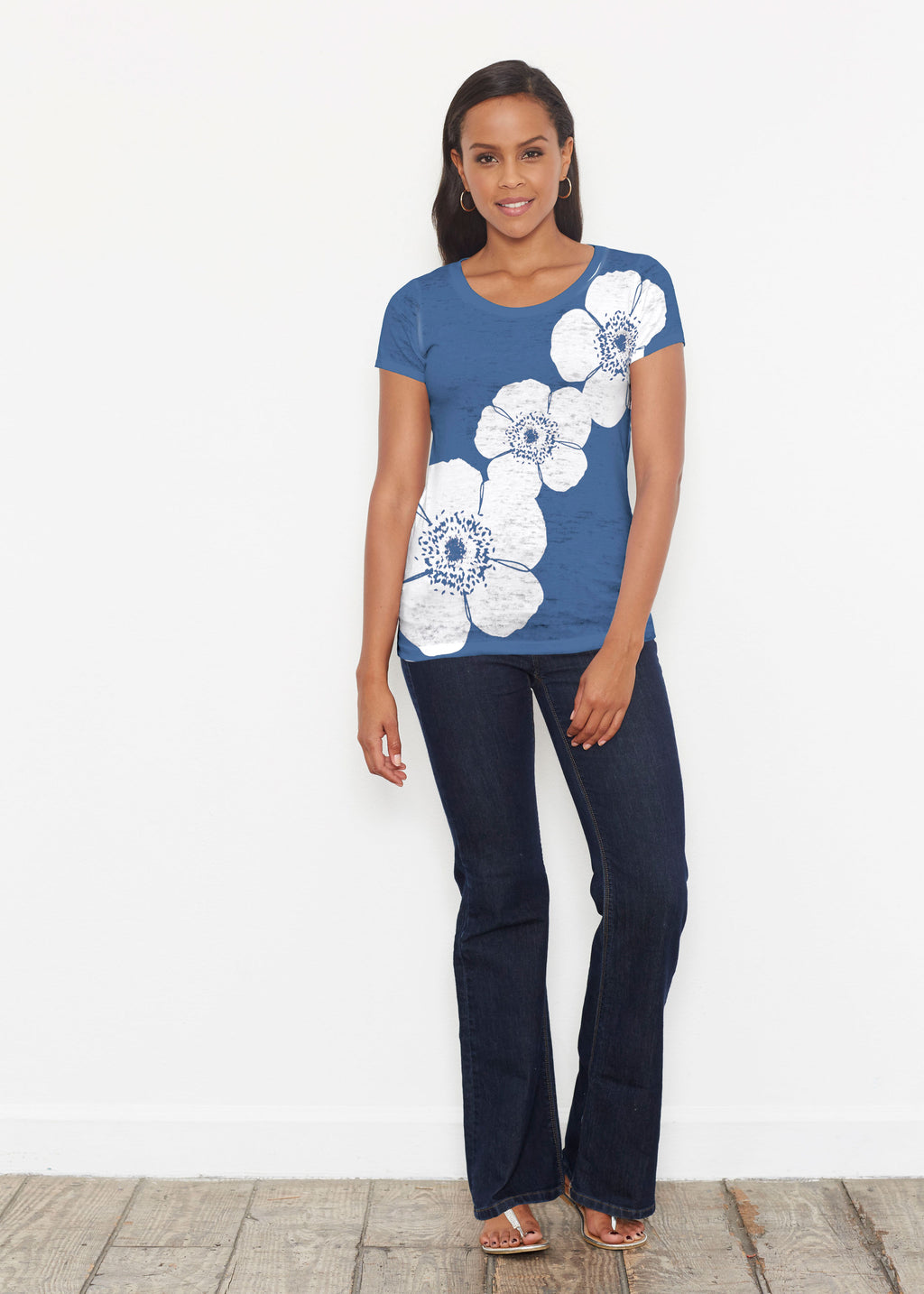 Our scoop neck tee in our casual and supremely soft Signature burnout blend is a best-selling collectible! A relaxed fit falls at the hip.