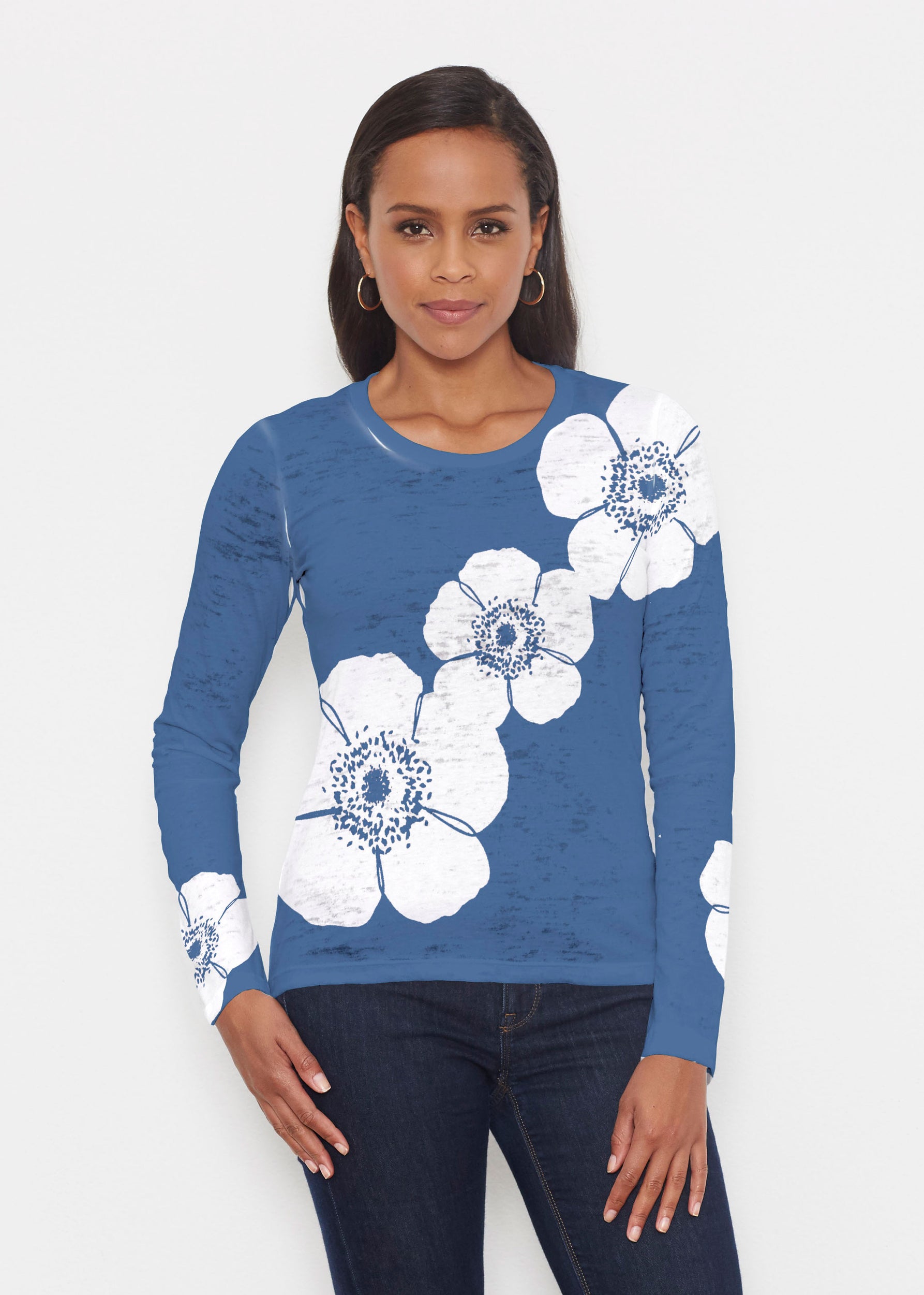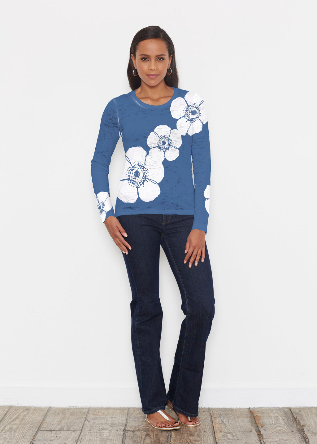 Our popular long sleeve tee is casual and fun in our Signature lightweight burn-out blend. This tee features a relaxed fit, crew neck, and long sleeves.