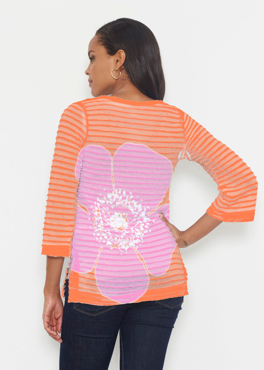This print features small poppies on the front with a large poppy on back in orange and pink. This classic favorite designed by Susan Werner.