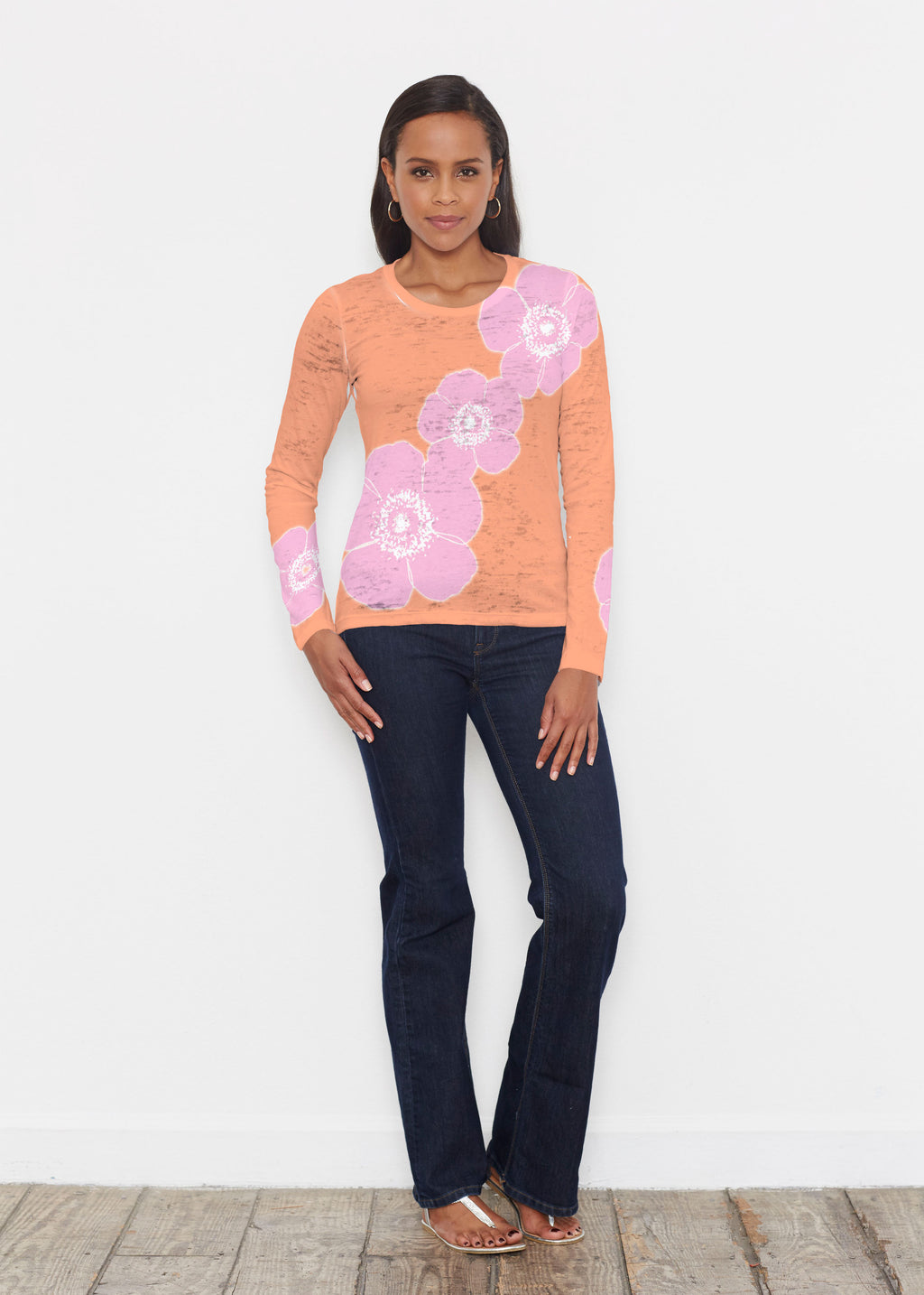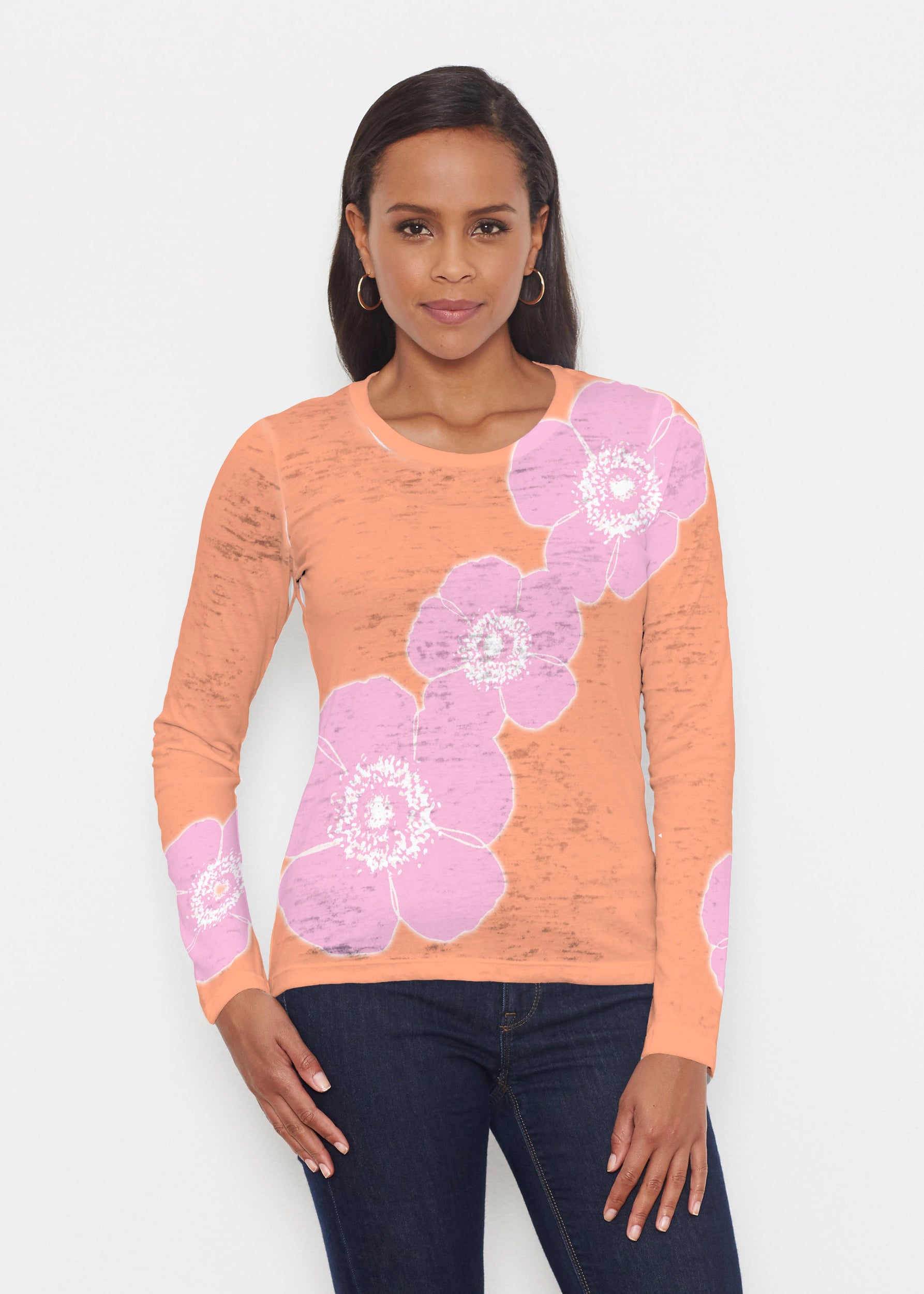 Our popular long sleeve tee is casual and fun in our Signature lightweight burn-out blend. This tee features a relaxed fit, crew neck, and long sleeves.