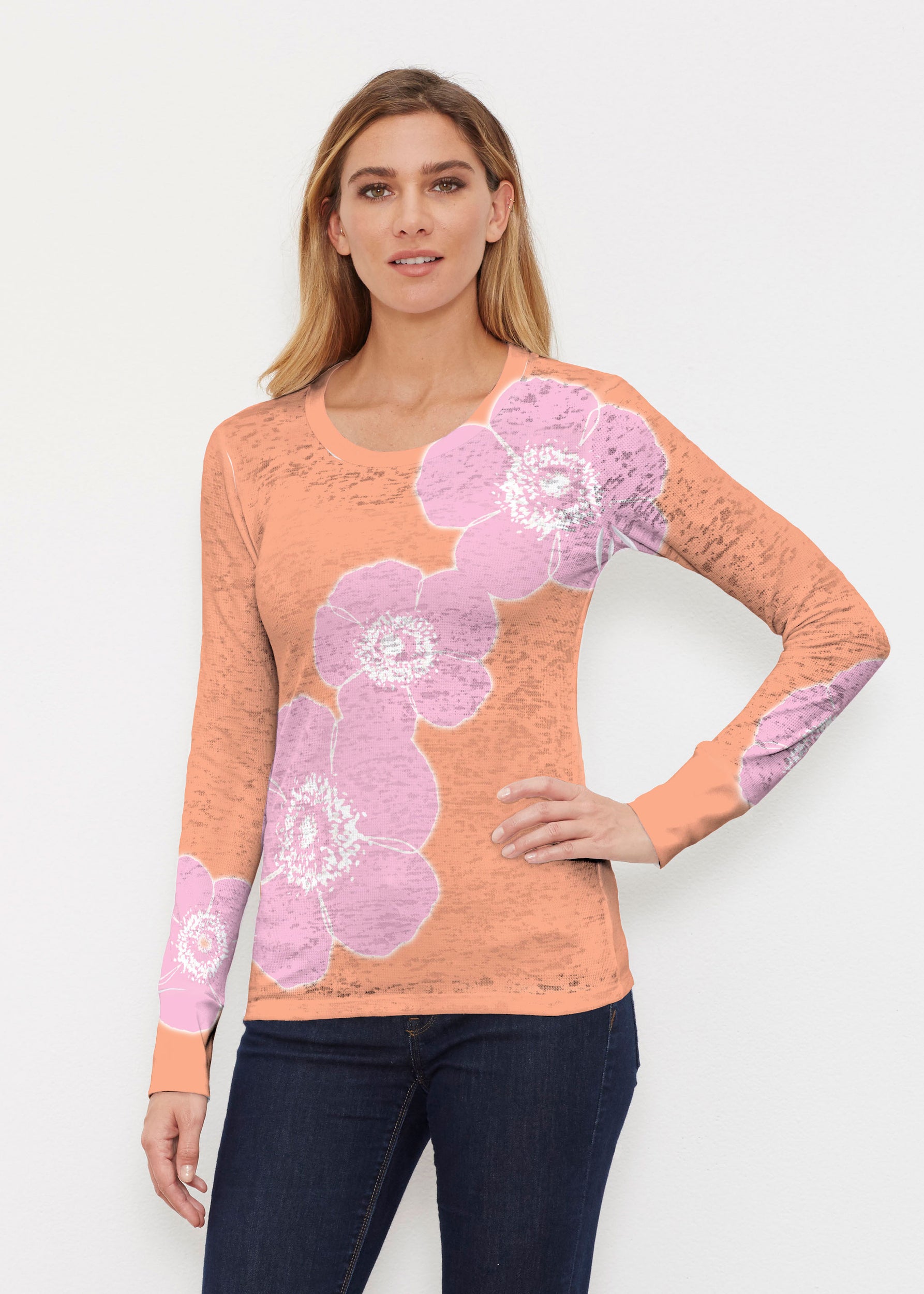 This tee, made out of our Baby Waffle burnout thermal blend, is a popular find for when there's a chill in the air. A cozy fit, long sleeves, and a crew neck are accented by 3" rib cuffs.