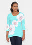 This print features small poppies on the front with a large poppy on back in aqua and white. This classic favorite designed by Susan Werner.