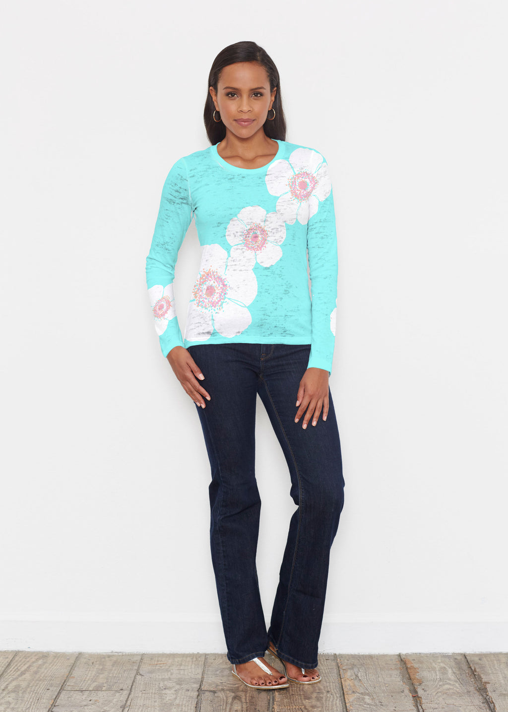 Our popular long sleeve tee is casual and fun in our Signature lightweight burn-out blend. This tee features a relaxed fit, crew neck, and long sleeves.