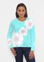 This print features small poppies on the front with a large poppy on back in aqua and white. This classic favorite designed by Susan Werner.