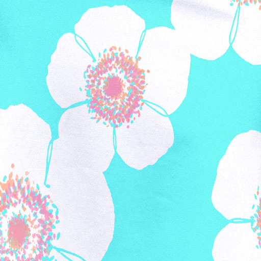 This print features small poppies on the front with a large poppy on back in aqua and white. This classic favorite designed by Susan Werner.