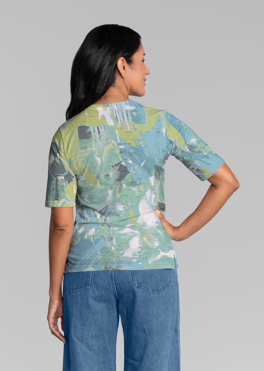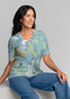 • Rain forest Splash (26005) ~ Signature Elbow Sleeve V-Neck Top
