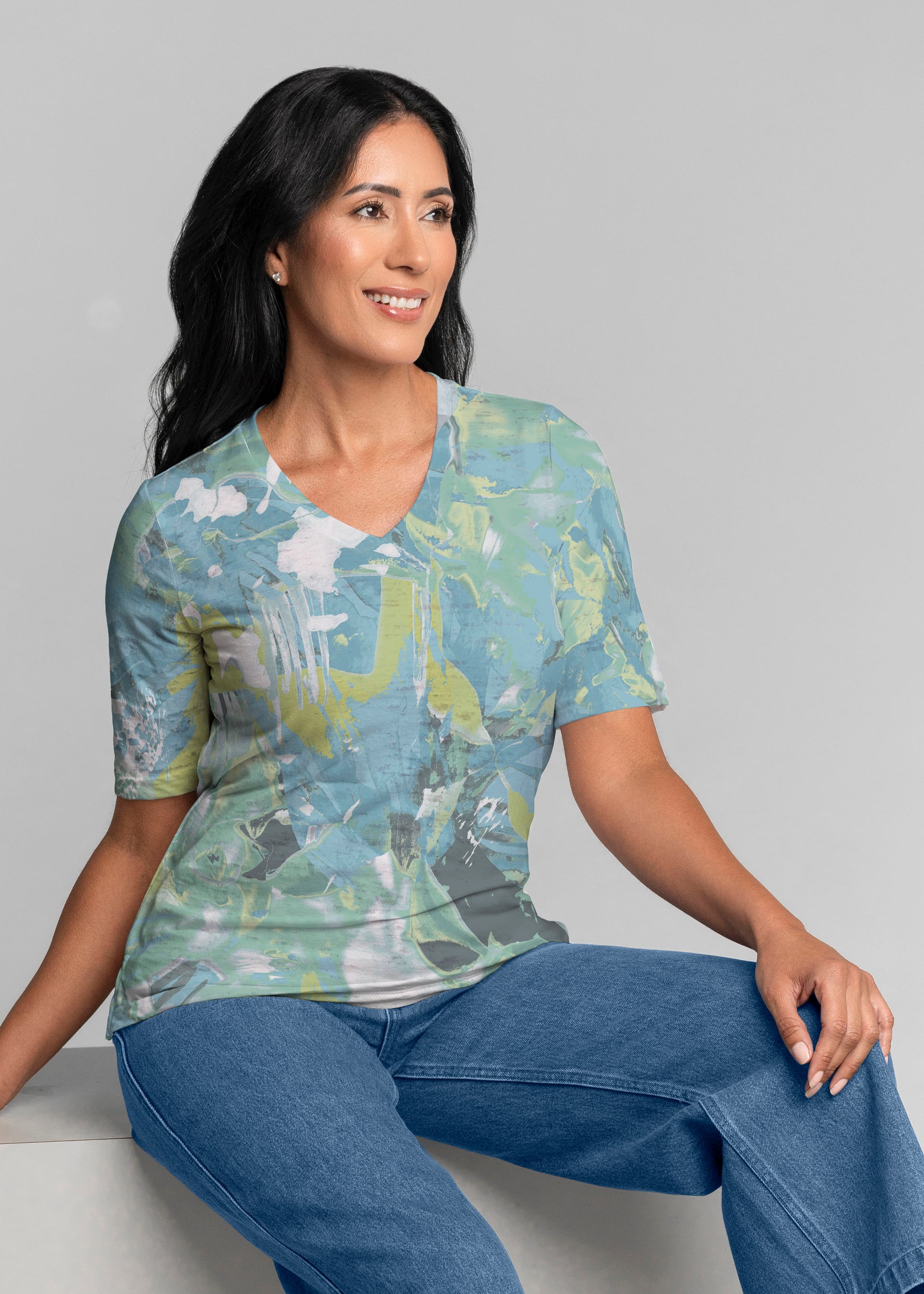 Rain forest Splash (26005) ~ Signature 3/4 Sleeve V-Neck Top