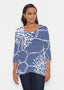 Playful floral and geometric print in navy and white designed by Leah Hoelscher.