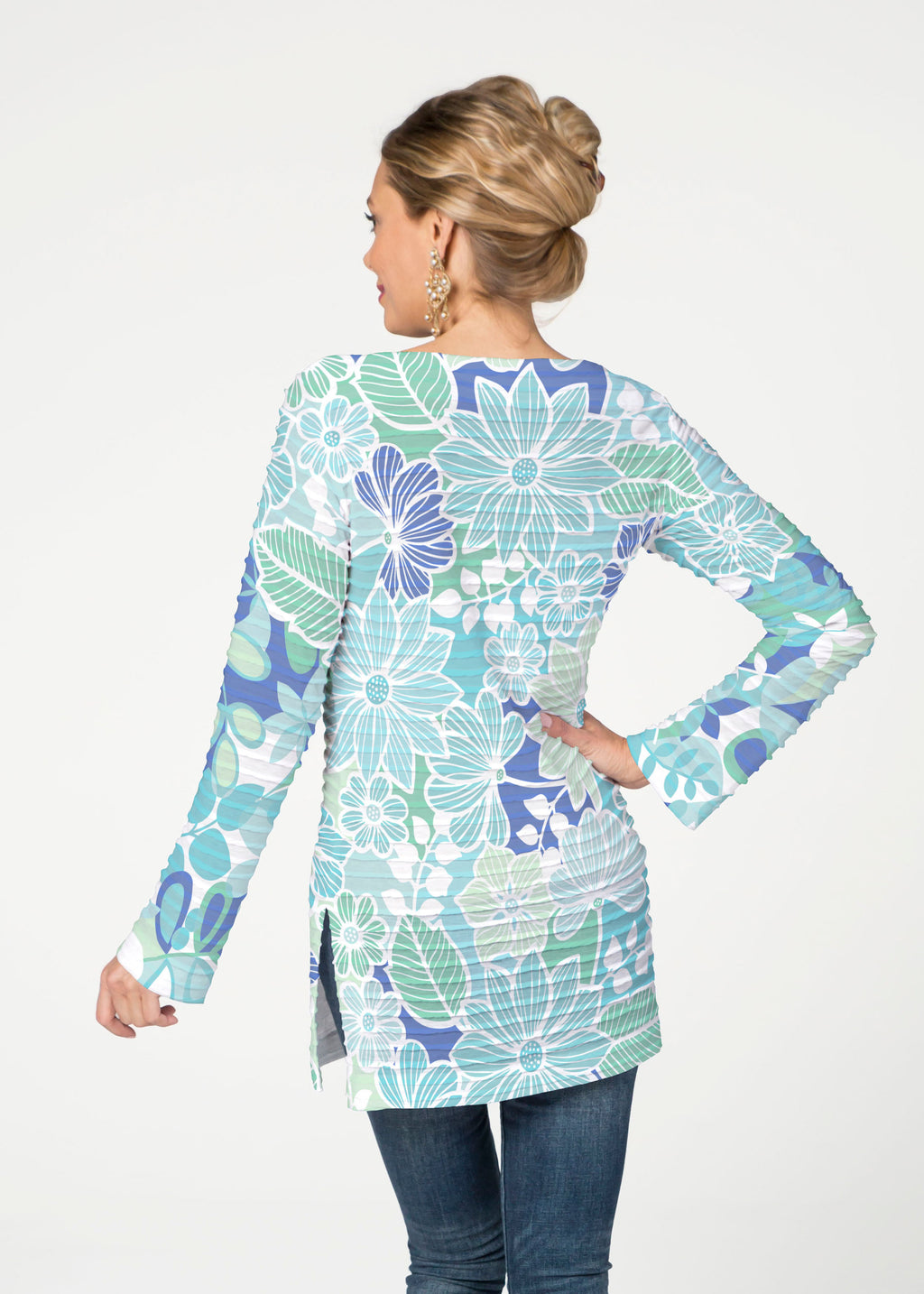 The Banded Boatneck Tunic has the soft pleated texture of our Banded fabric, making this a sophisticated, casual year round piece. A forgiving fit, side vents, with a relaxed full length sleeve combine for a flattering look. The hemline flows gently over the hip.