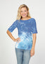 Shadow Aqua (7914) ~ Banded Elbow Sleeve Boat Neck Top