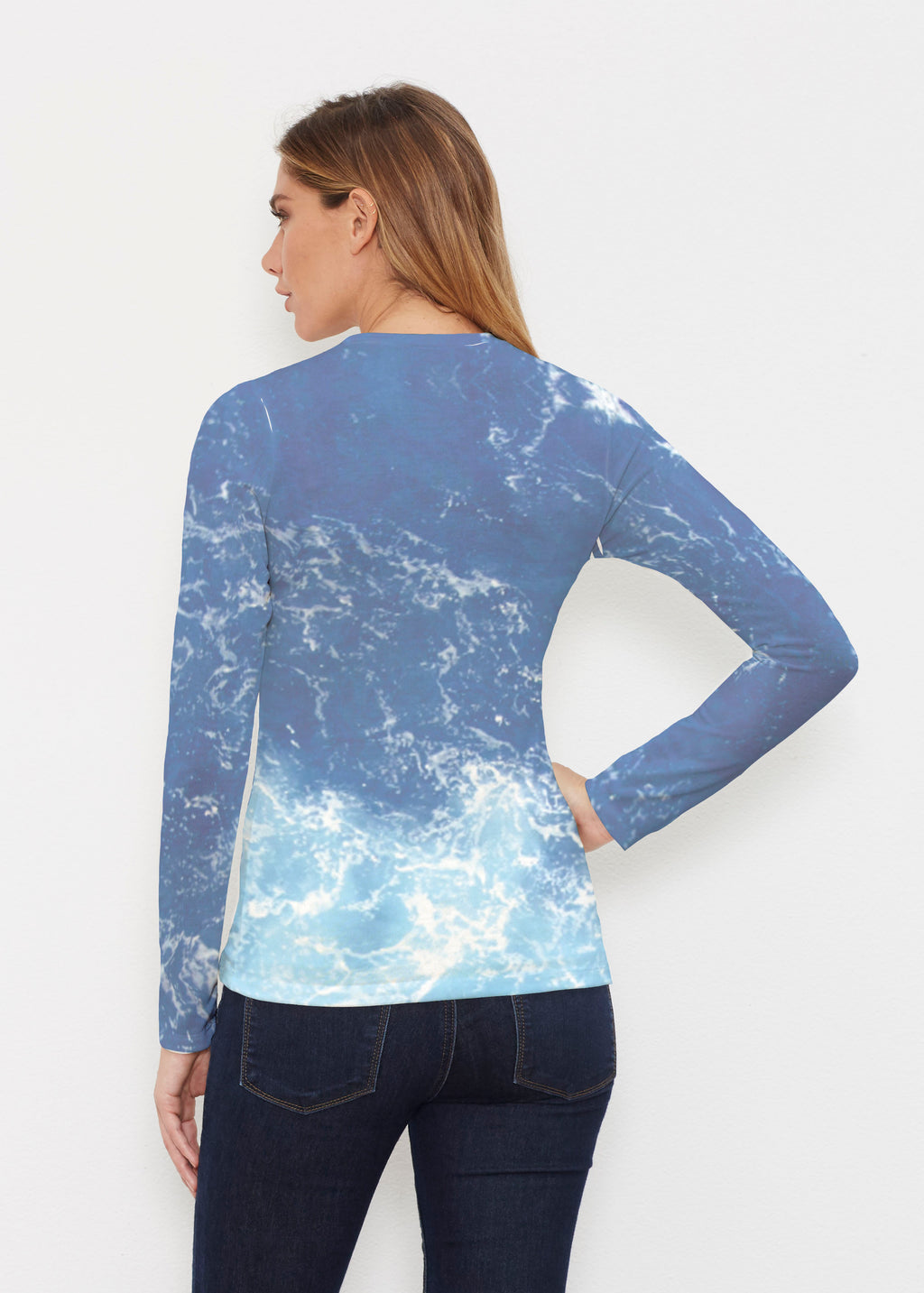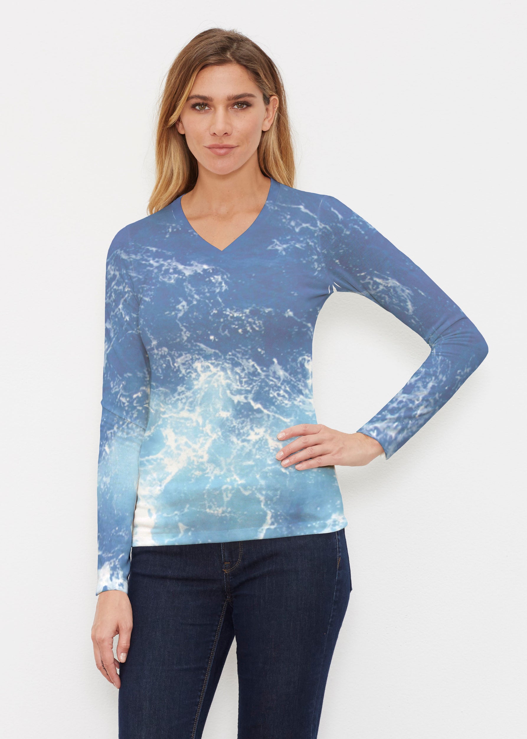Jungle Warrior Blue (7850) ~ Butterknit Long Sleeve V-Neck Top