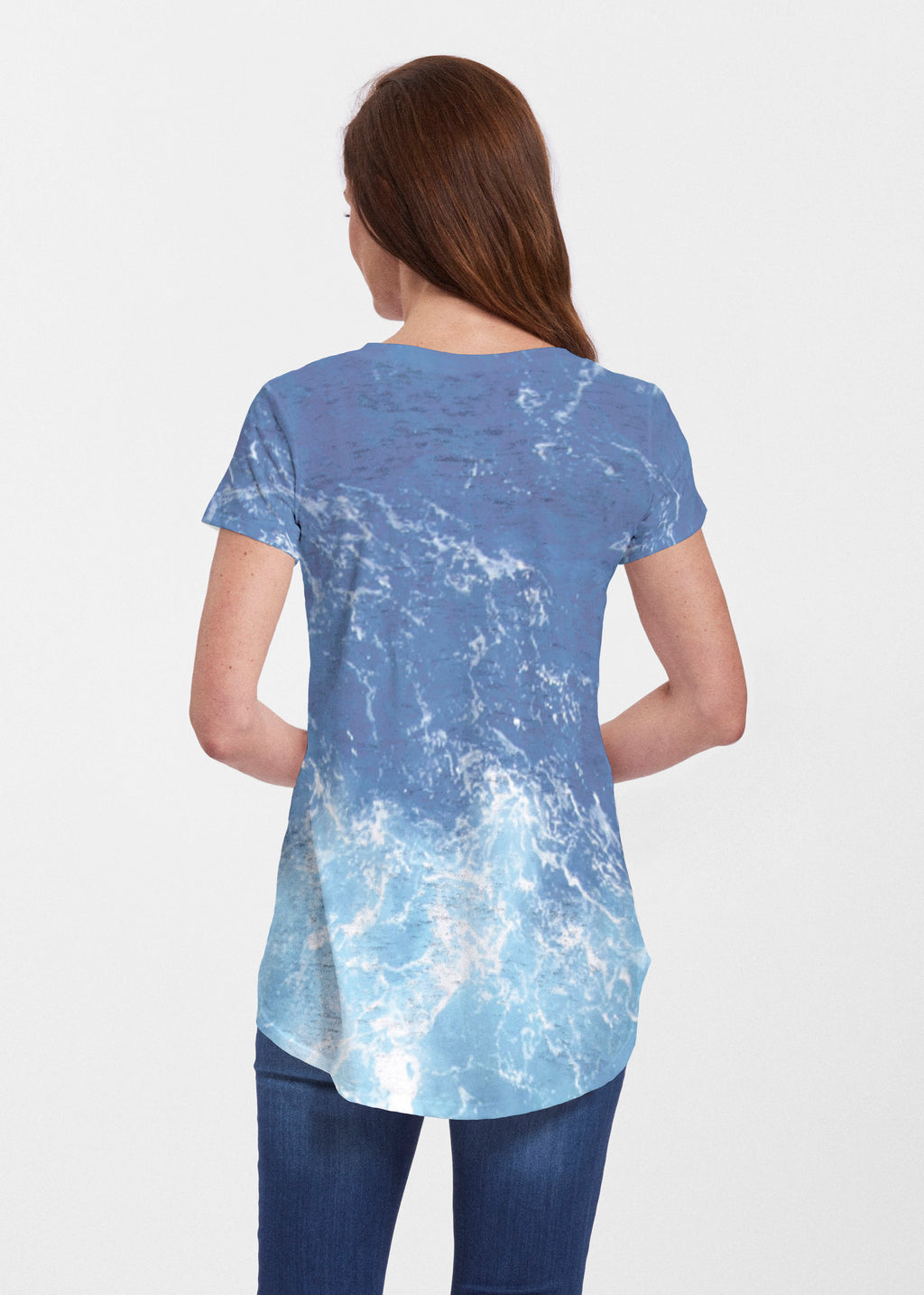 Sea Blue (5098) ~ V-neck Flowy Tunic