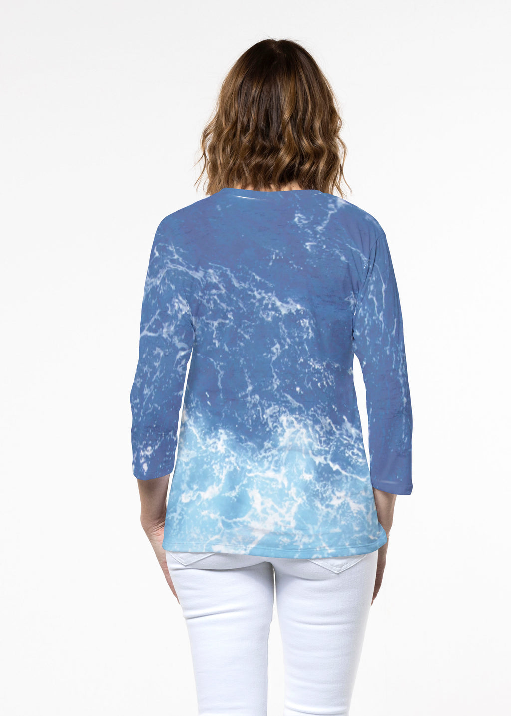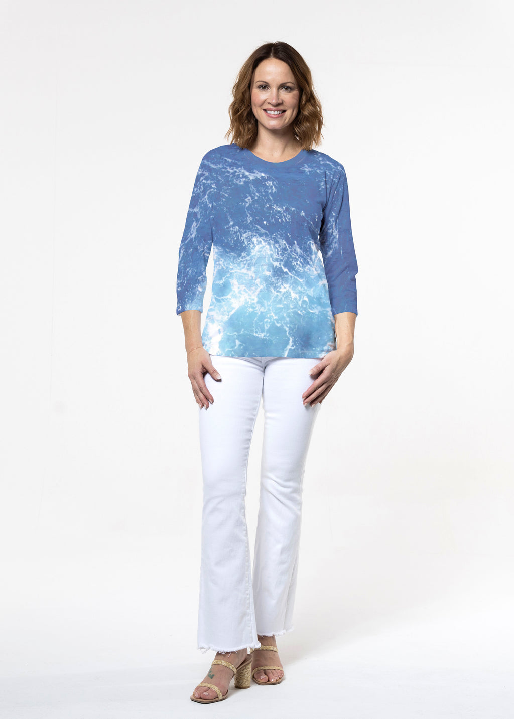 Aspen Aqua (19186) ~ Signature 3/4 Sleeve Crew Neck Top