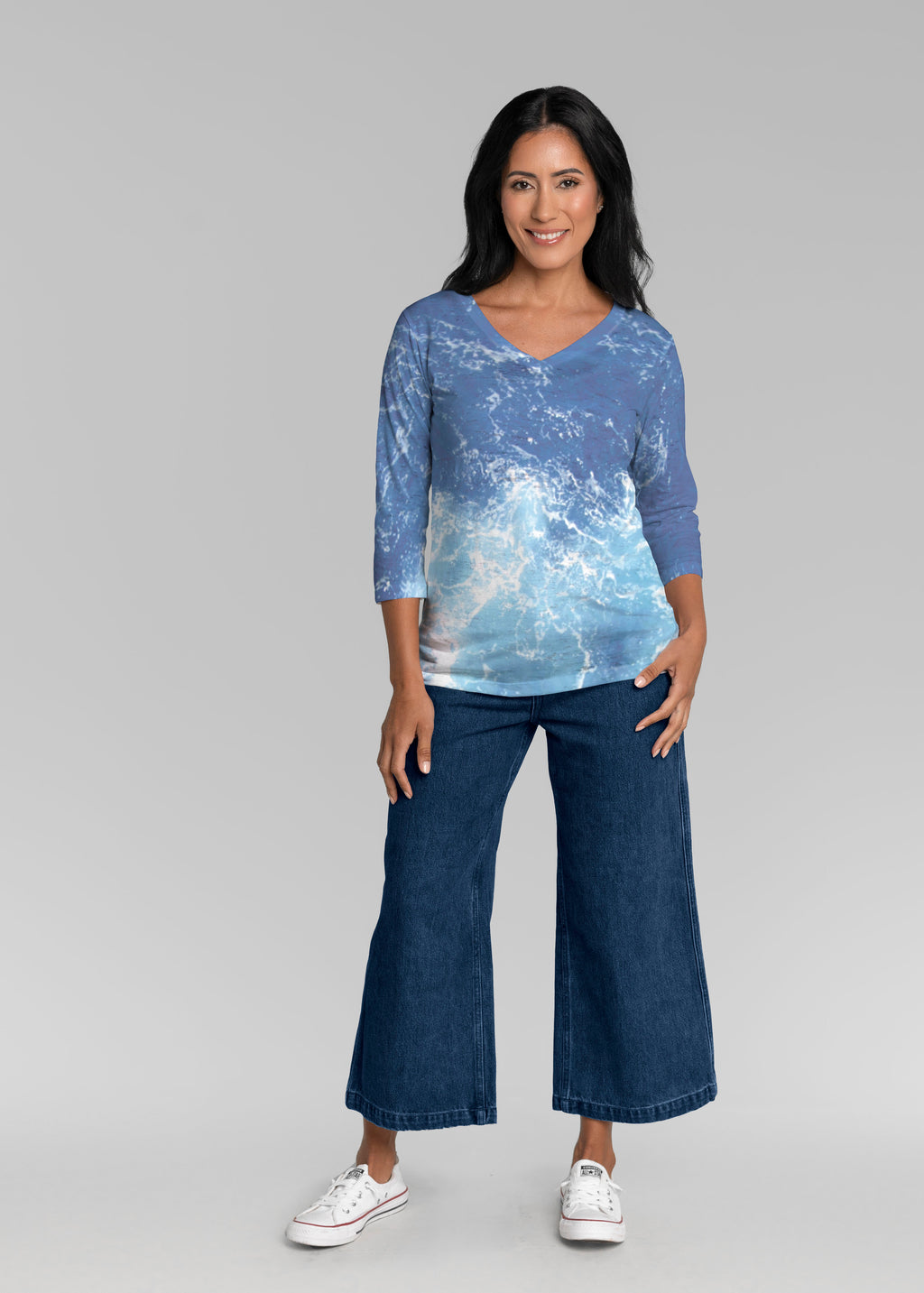 Our casual Signature 3/4 sleeve has a subtle v-neck and is perfectly proportioned and a new best-selling favorite. This relaxed fit is not only flattering but you get to pick that special print for any mood.