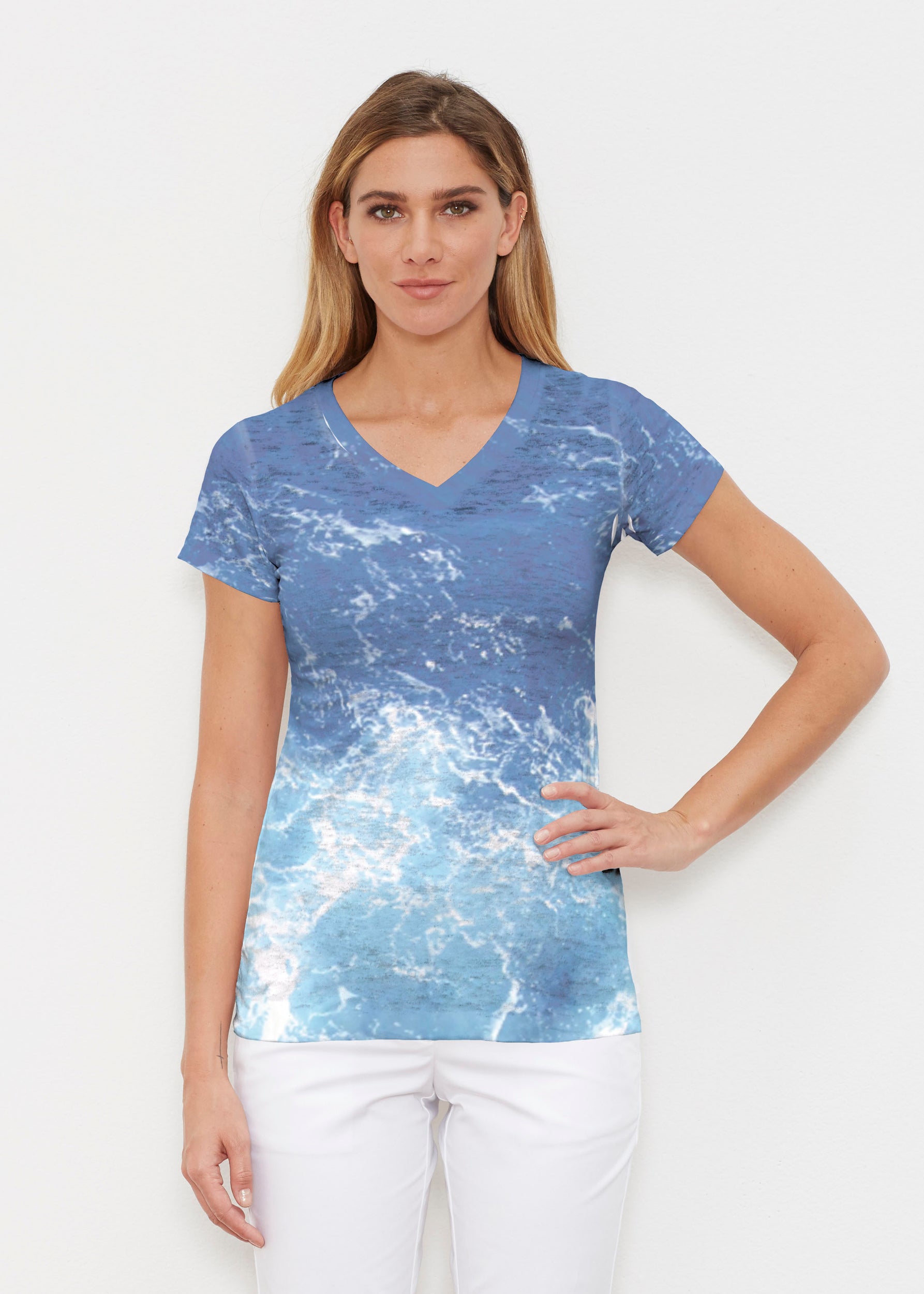 Sea Blue (5098) ~ Signature Cap Sleeve V-Neck Shirt