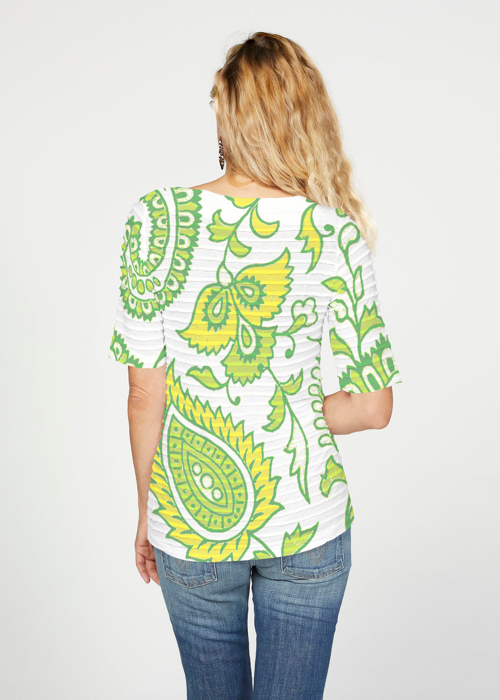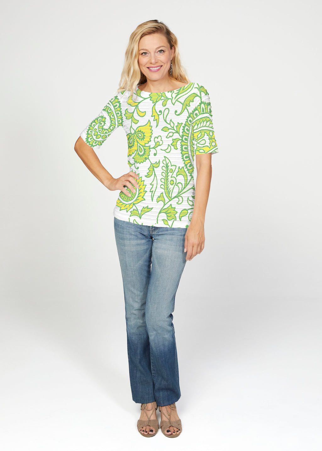 Serena Lime (8186) ~ Banded Elbow Sleeve Boat Neck Top