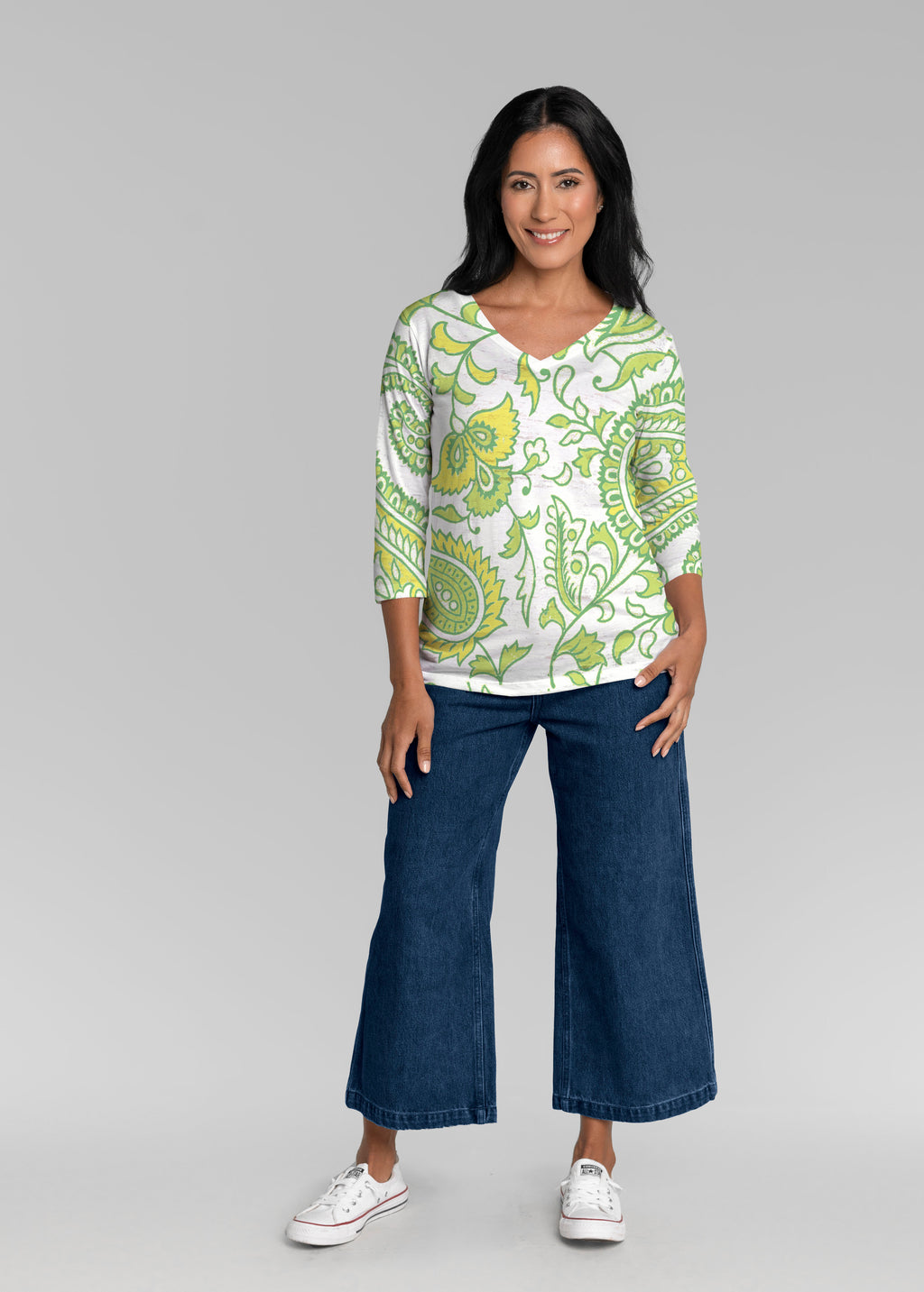 Our casual Signature 3/4 sleeve has a subtle v-neck and is perfectly proportioned and a new best-selling favorite. This relaxed fit is not only flattering but you get to pick that special print for any mood.