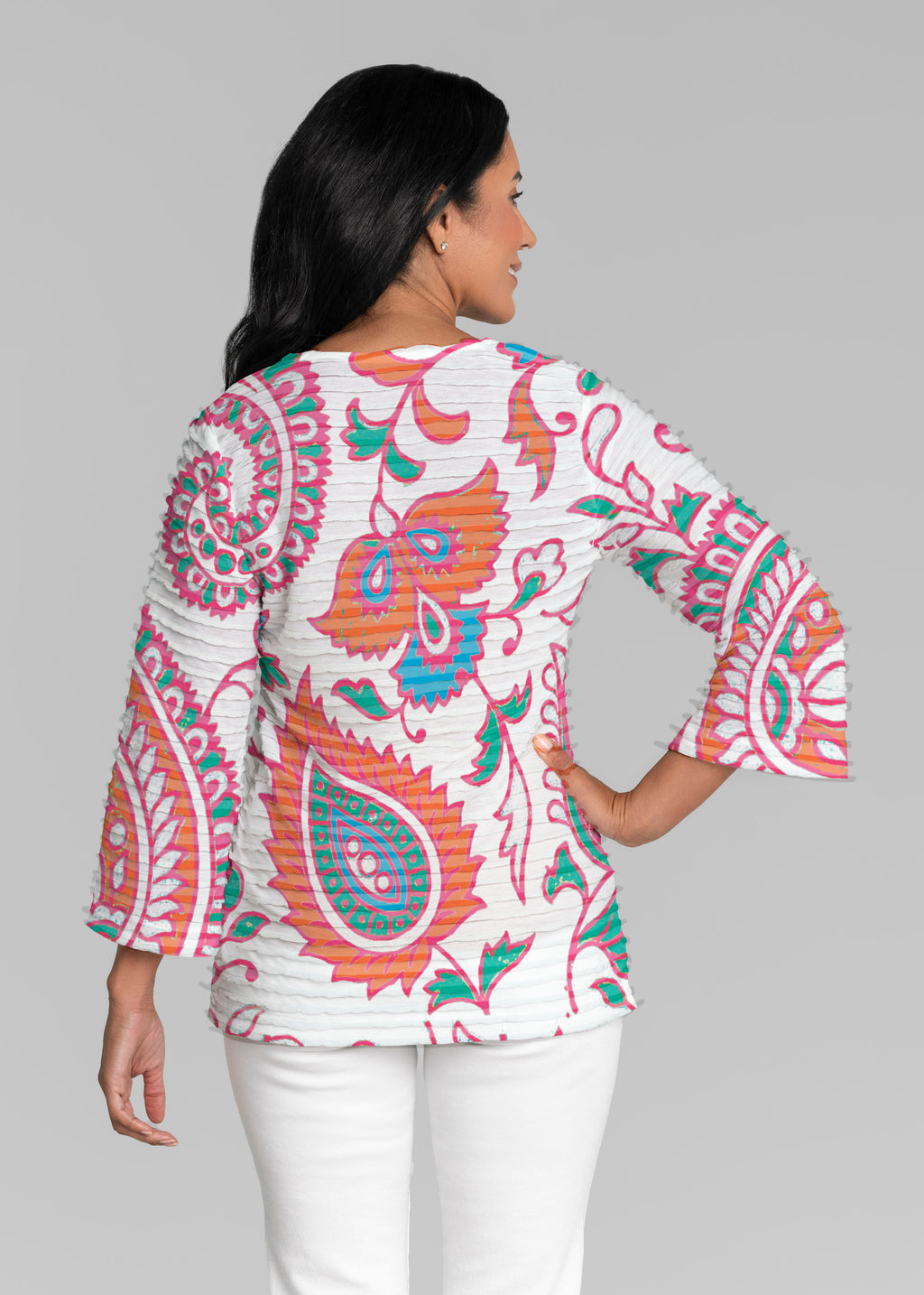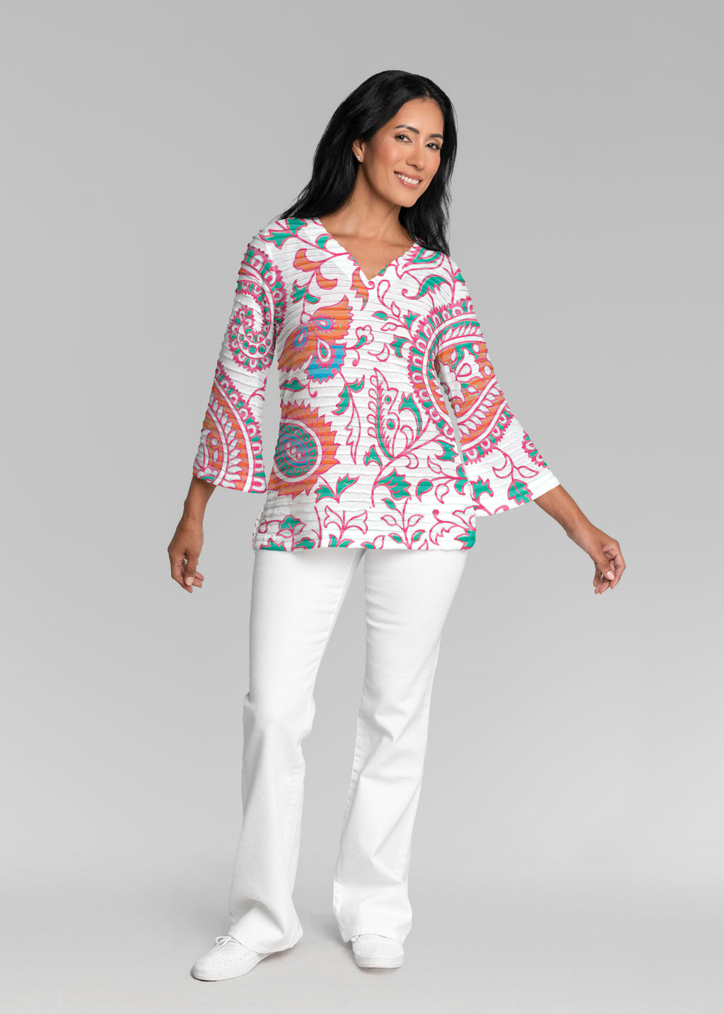 Bali Batik (26003) ~ Banded 3/4 Bell-Sleeve V-Neck Tunic