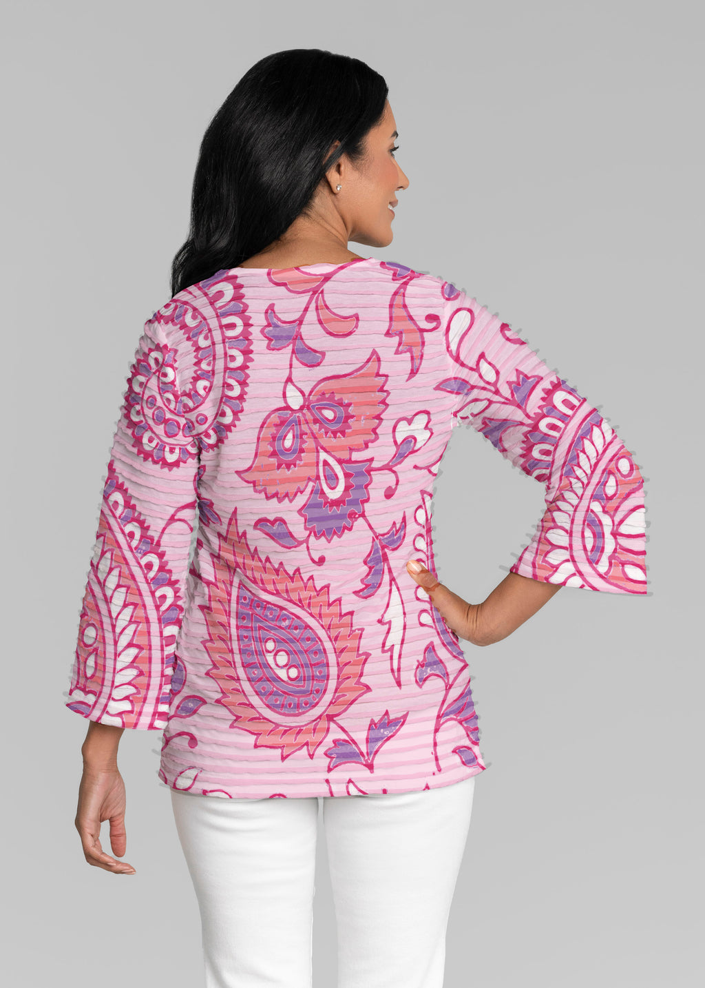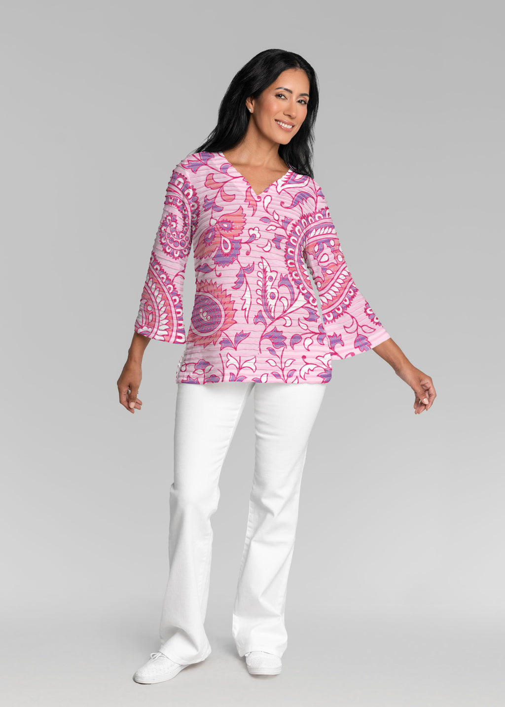 Bali Batik (26003) ~ Banded 3/4 Bell-Sleeve V-Neck Tunic
