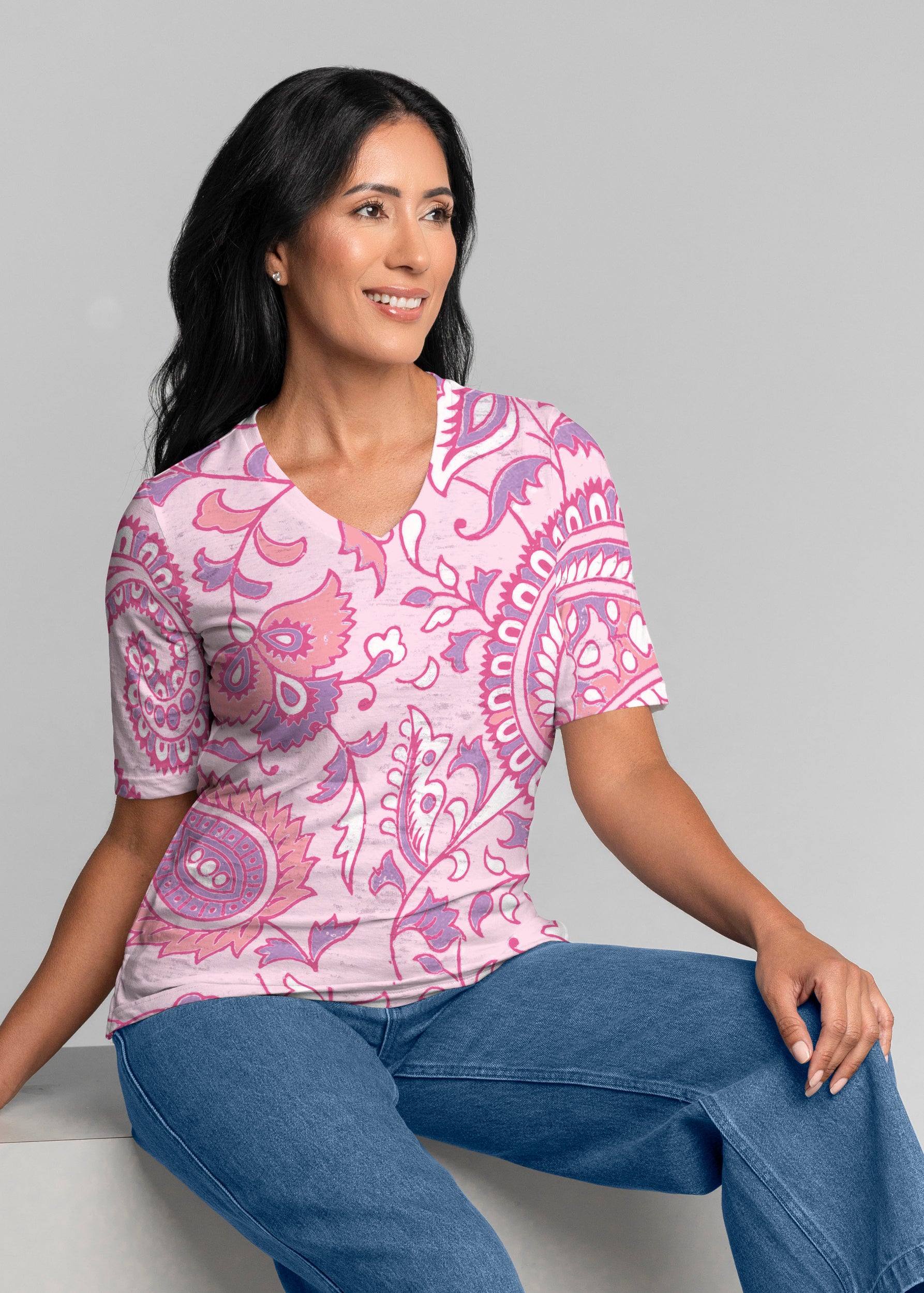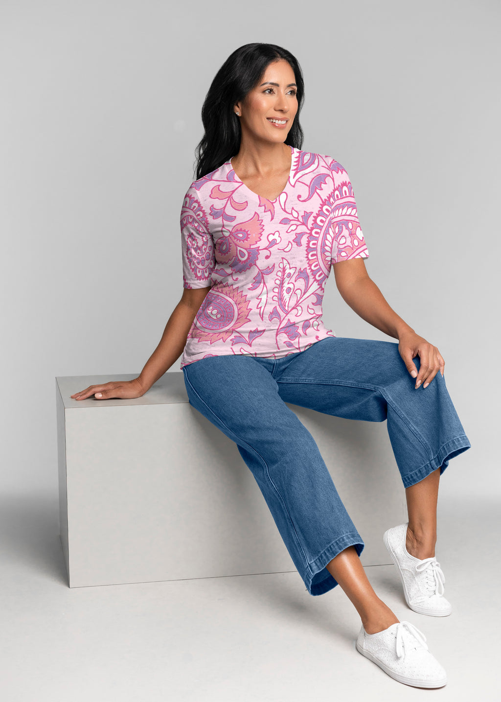 May Flowers (8027) ~ Signature Elbow Sleeve V-Neck Top