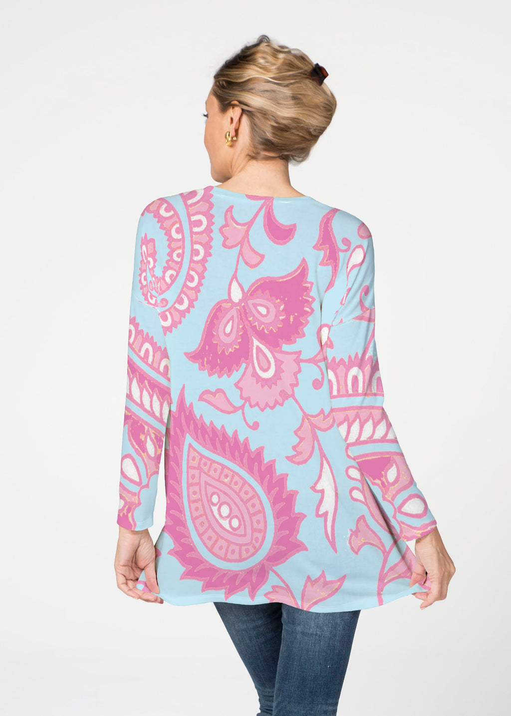 Serena Pink (8187) ~ Banded 3/4 Bell-Sleeve V-Neck Tunic