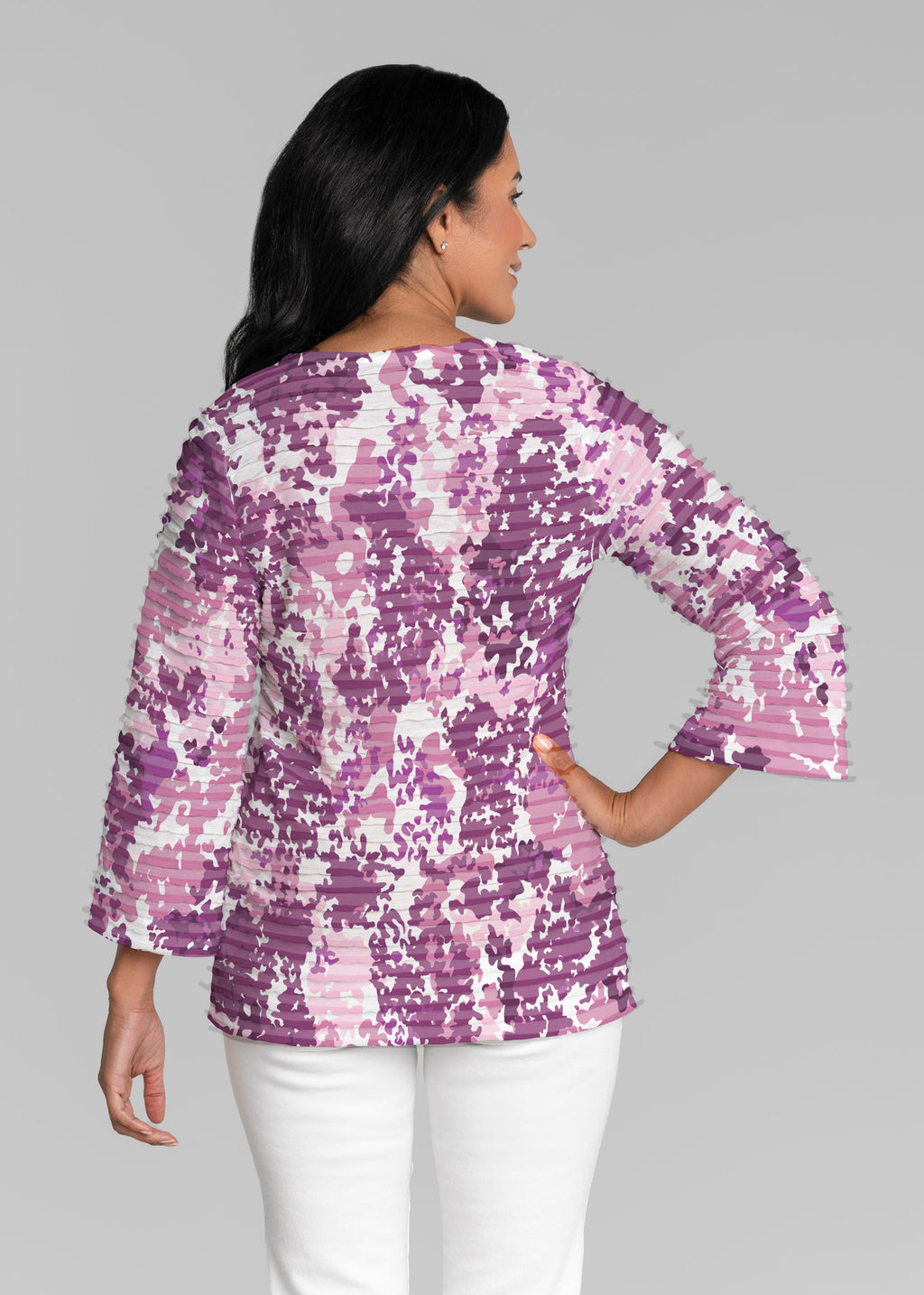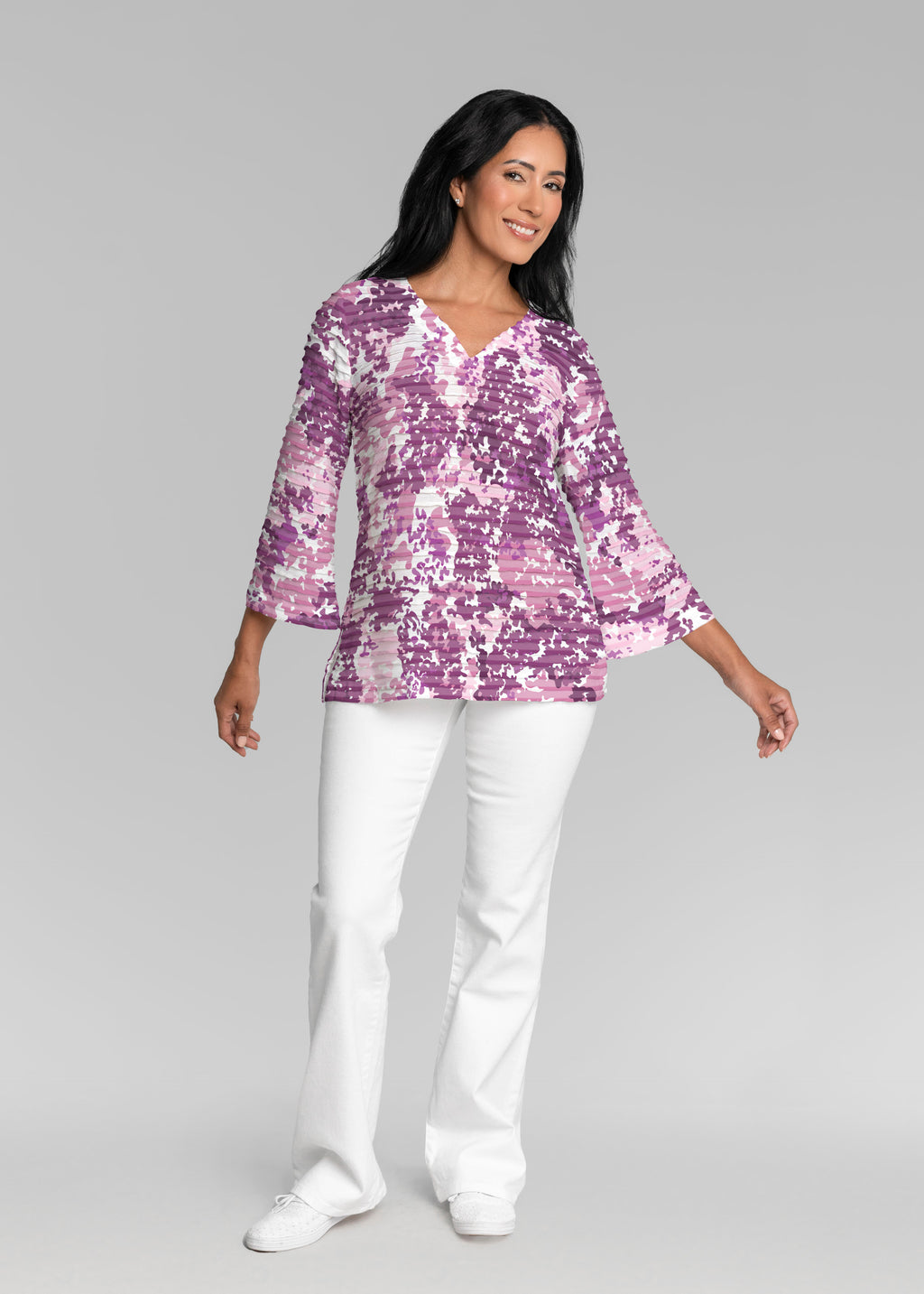 • Violet Crush (26052) ~ Banded 3/4 Bell-Sleeve V-Neck Tunic