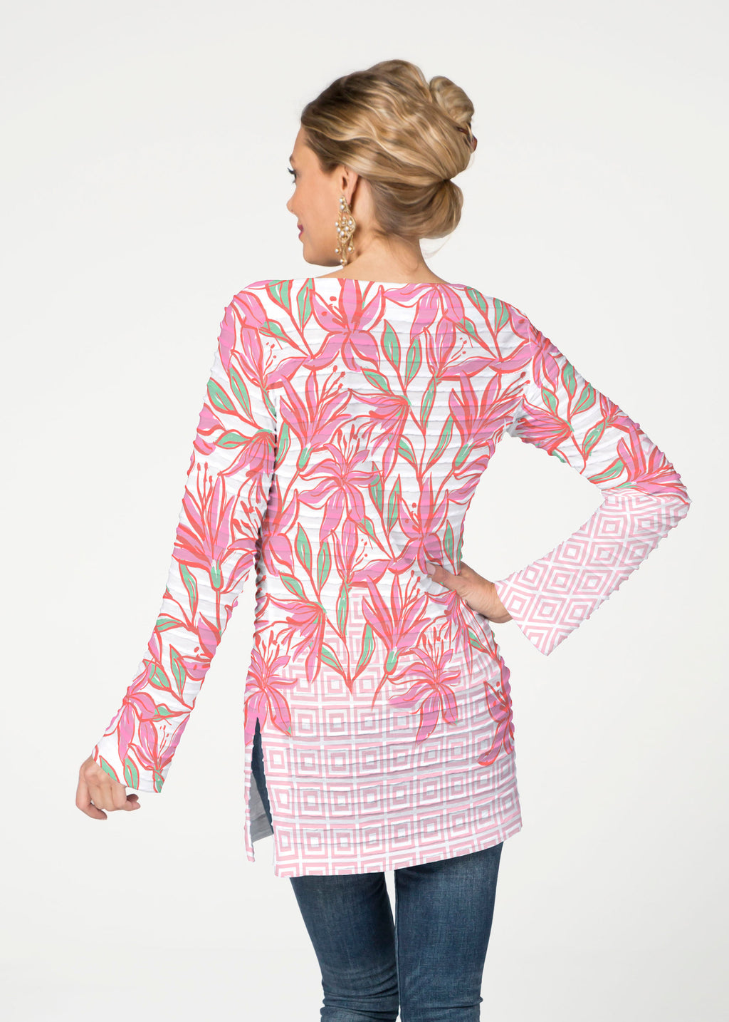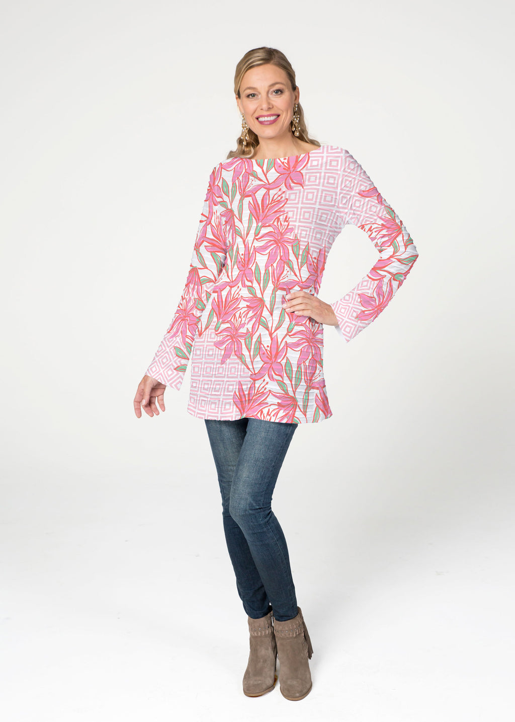 The Banded Boatneck Tunic has the soft pleated texture of our Banded fabric, making this a sophisticated, casual year round piece. A forgiving fit, side vents, with a relaxed full length sleeve combine for a flattering look. The hemline flows gently over the hip.