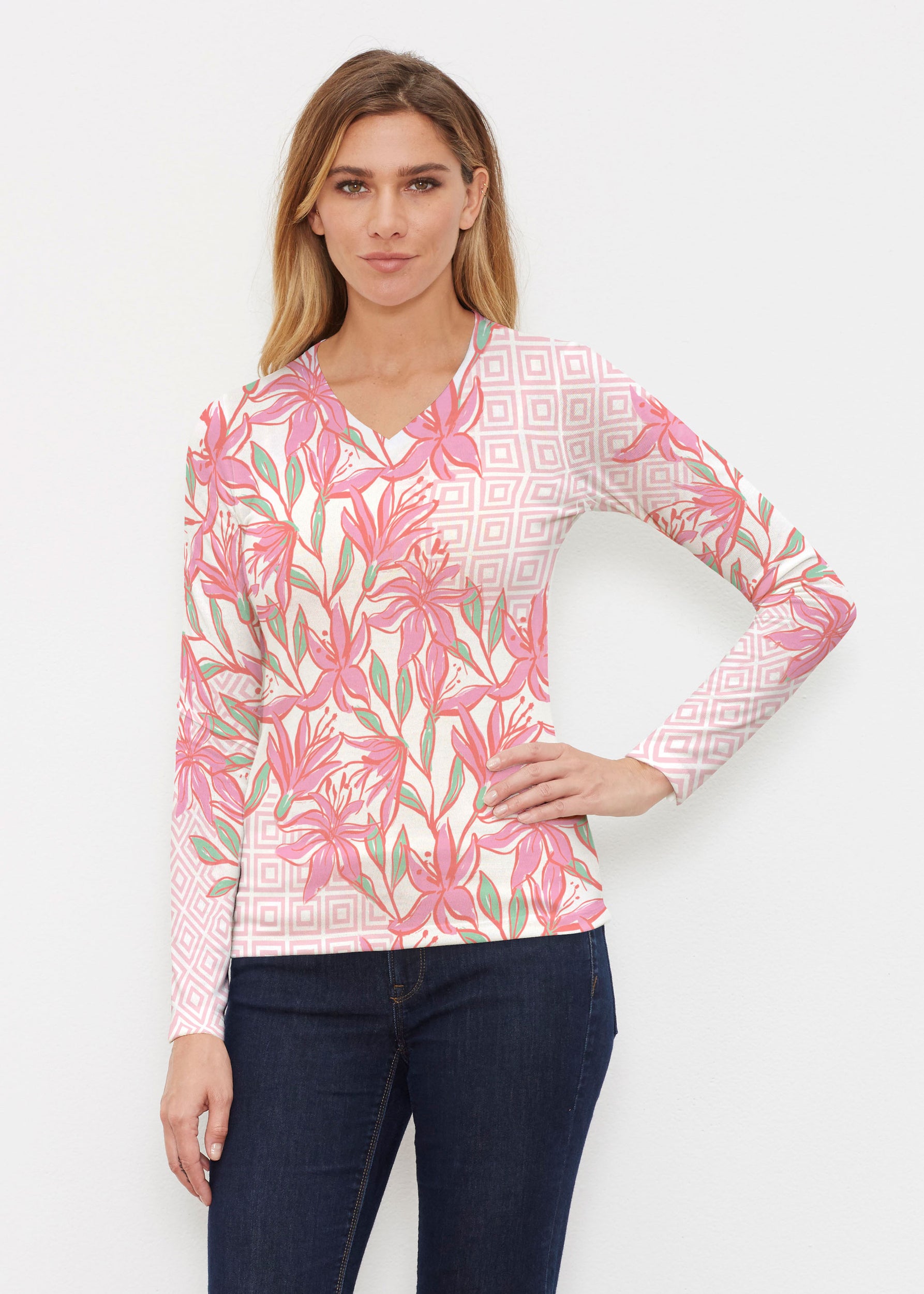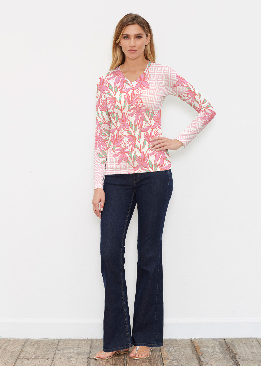 Polished and elegant, this top is a sophisticated option for chillier temps. Our soft and cozy Butterknit fabric, long sleeves, fitted shape, and v- neck make the perfect comfortable and stylish look in your favorite print.