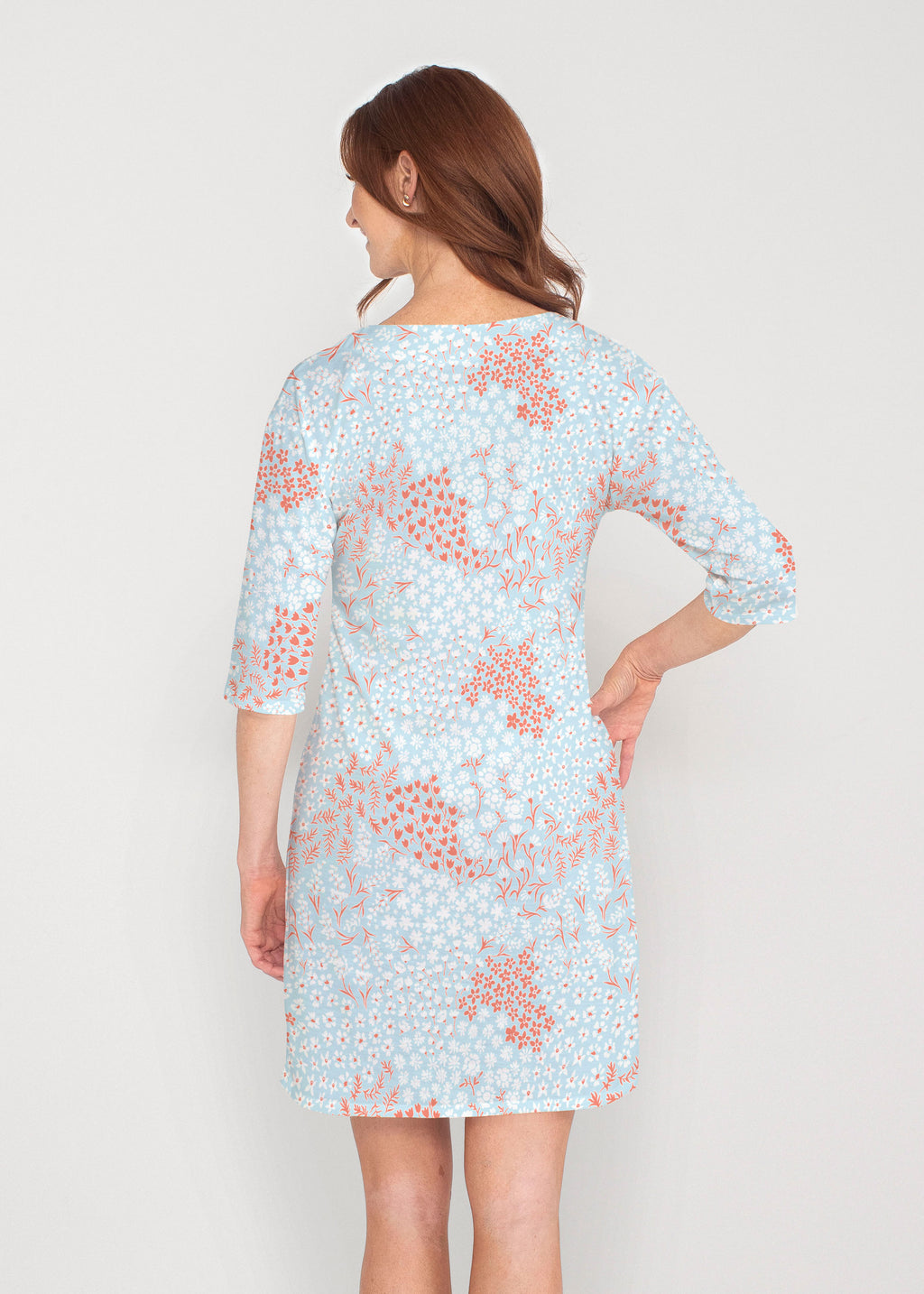 Floral Spritz Turquoise (22093) ~ Classic V-neck Swing Dress