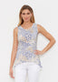 This tank is the perfect combination of an elegant shape with a sporty look. A high-low cascading hemline falls loosely over the hip in our Signature burnout fabric. No sleeves and a shallow scoop neckline give this tank its sporty vibe. -- Your one-of-a-kind garment is created using all-over soft garment sublimation printing. Selected designs are individually printed into your garment. Cotton/Polyester blend.