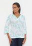 A fun citrus stamped print in aqua and white, designed by Susan Werner.