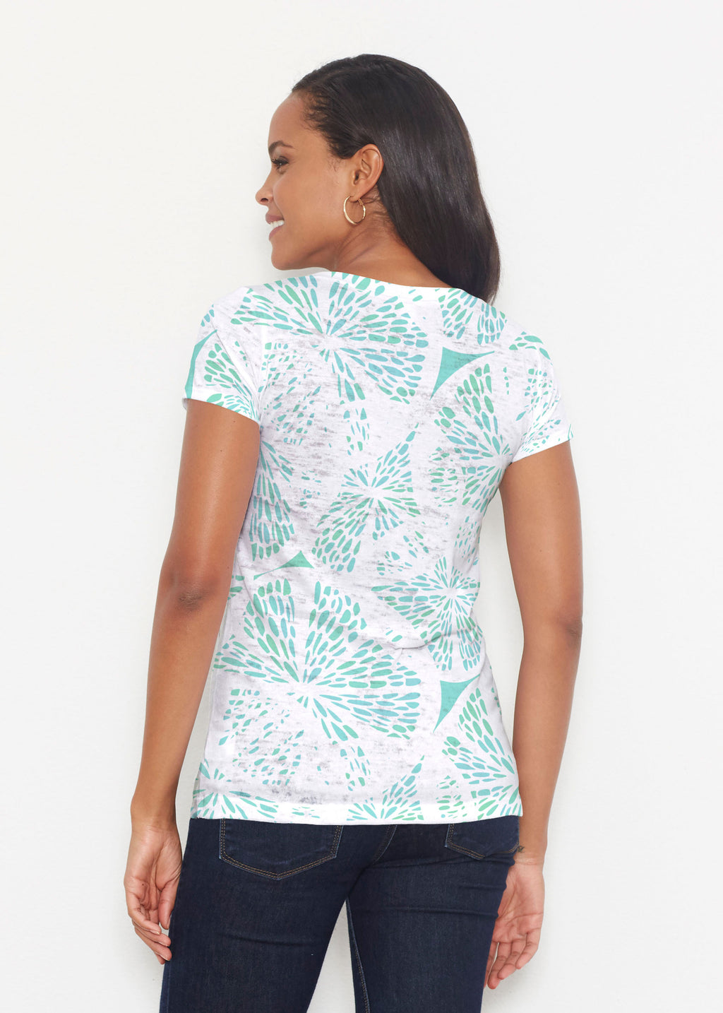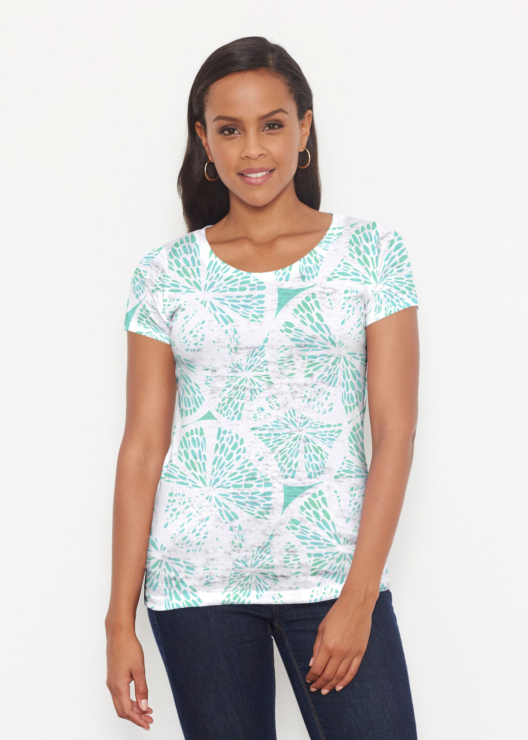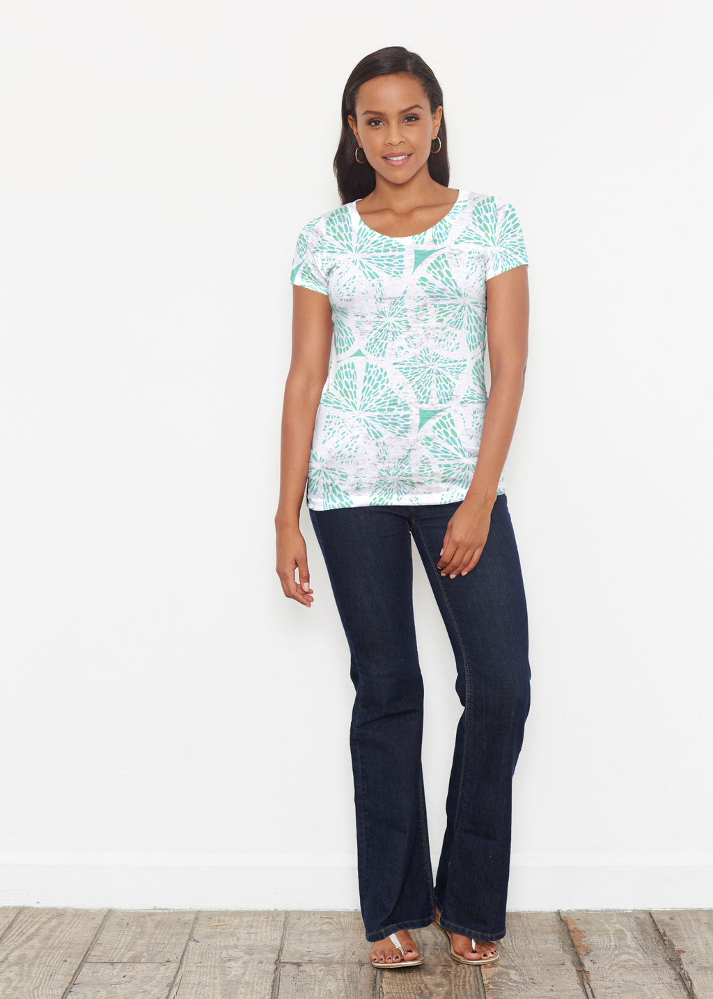 Our scoop neck tee in our casual and supremely soft Signature burnout blend is a best-selling collectible! A relaxed fit falls at the hip.