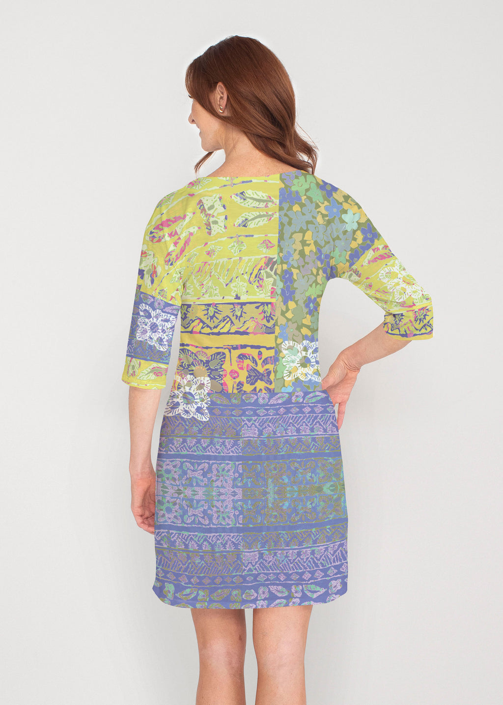 Leah Leaves (16258) ~ Drop Shoulder 3/4 Sleeve V-Neck Dress